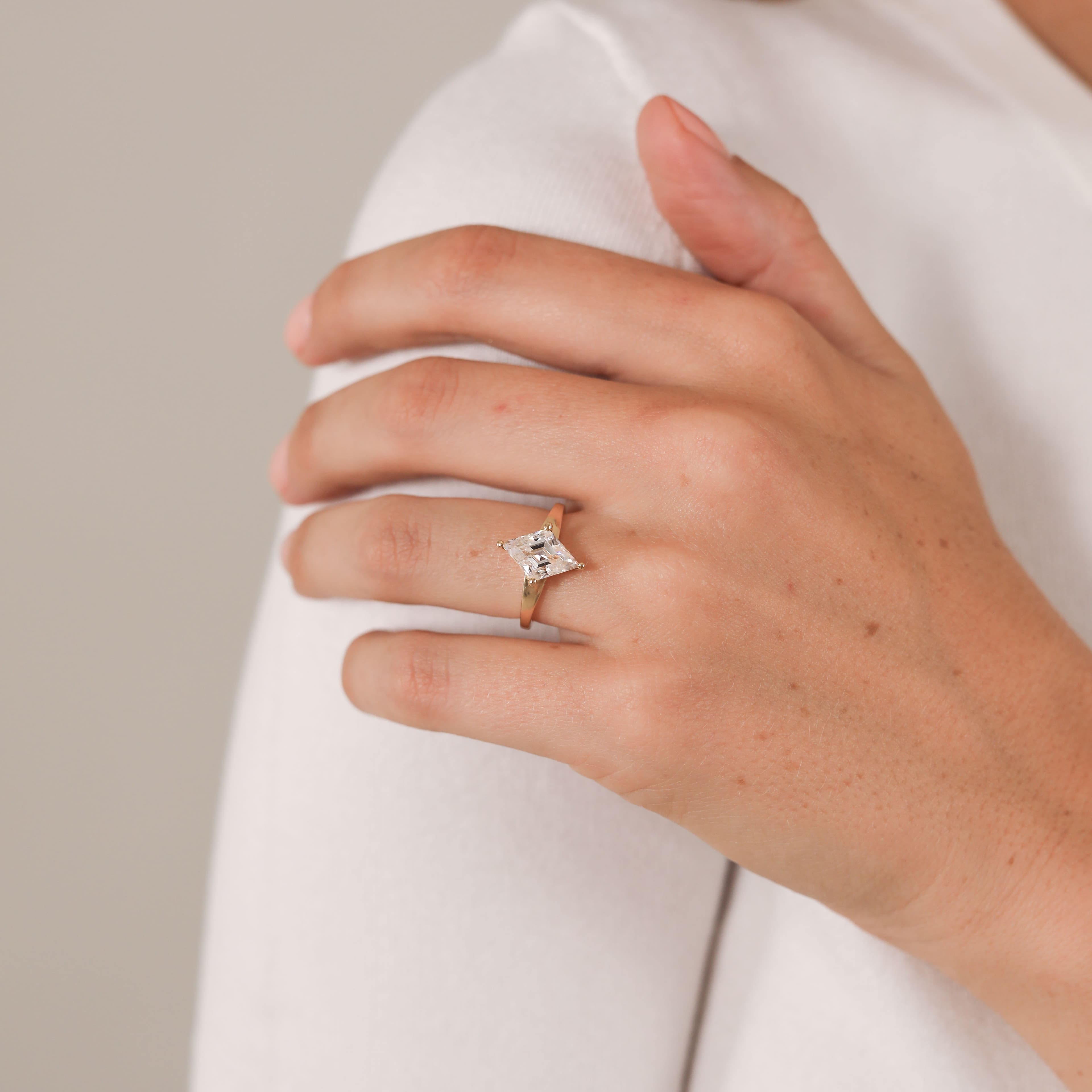 Elongated shapes like ovals, emeralds, duchess, and pears are stealing the show, offering a unique and elegant alternative to traditional cuts