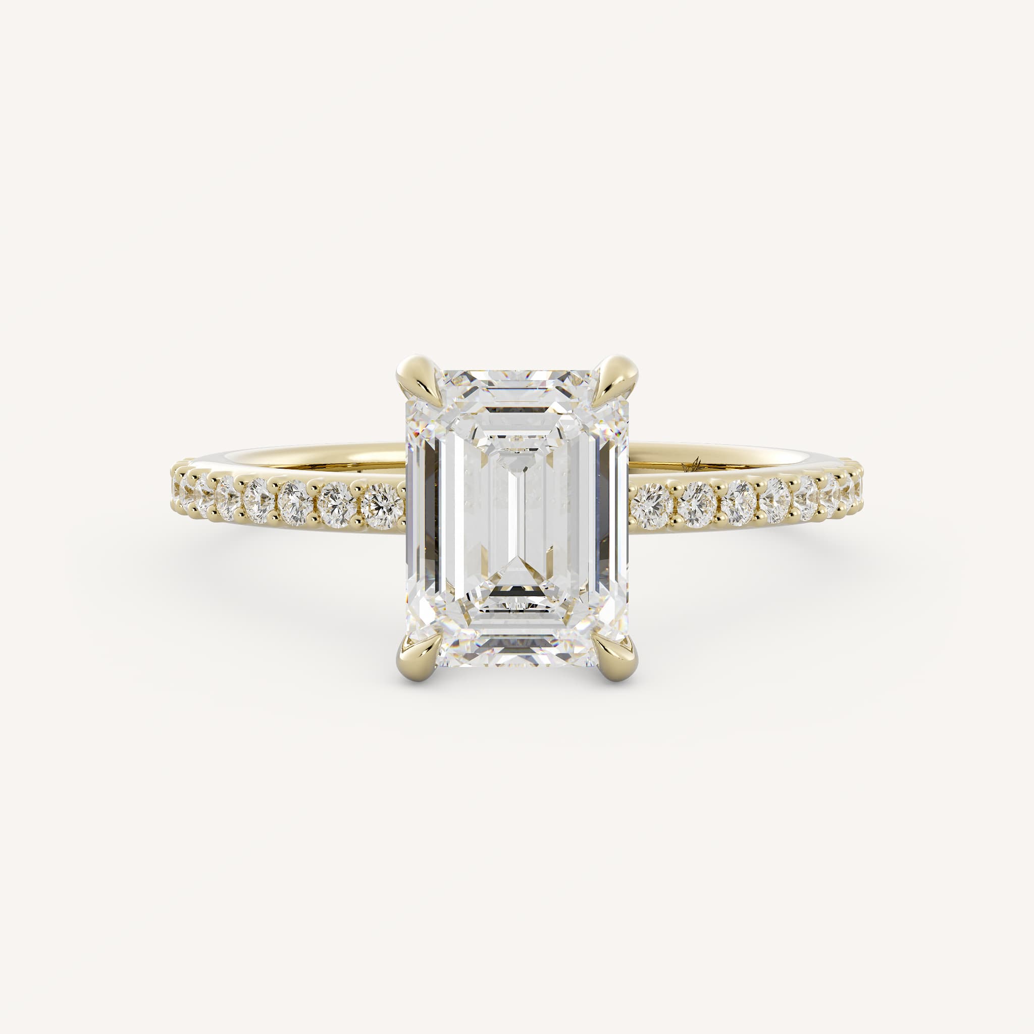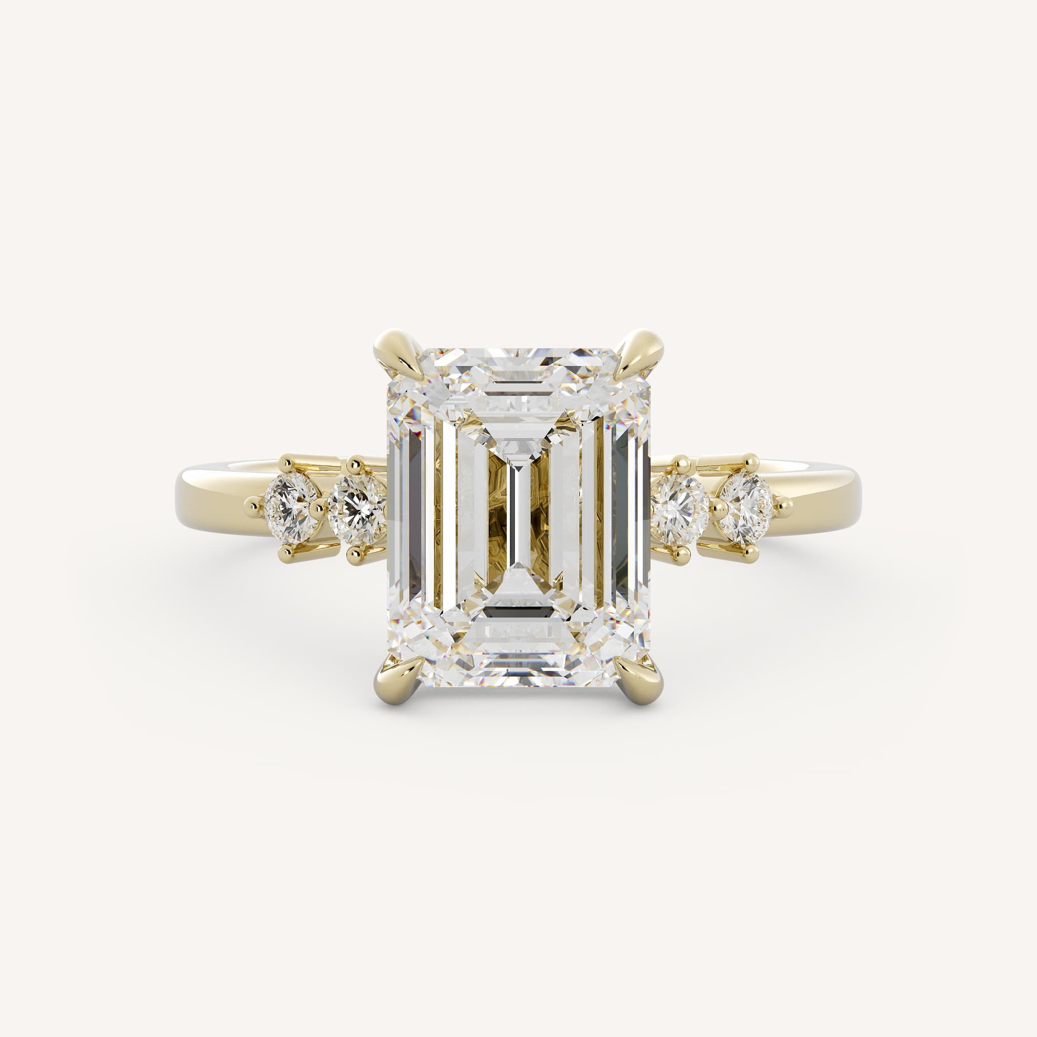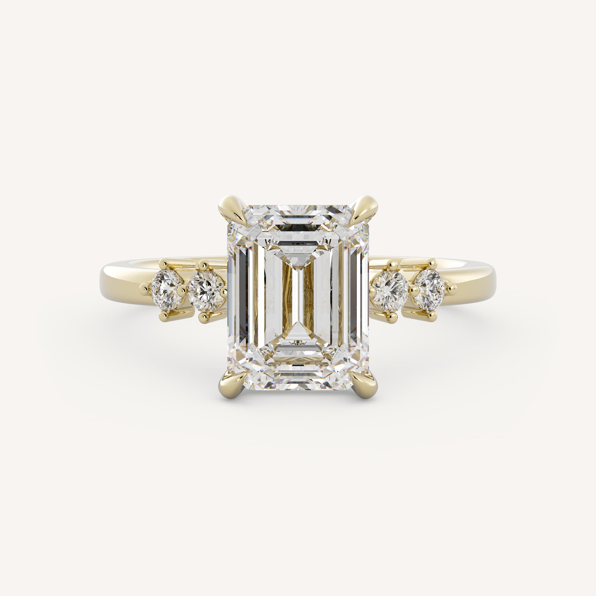 Small diamonds can be used as accents to the radiant or emerald cut center. This showcases the center stone and adds sparkle!