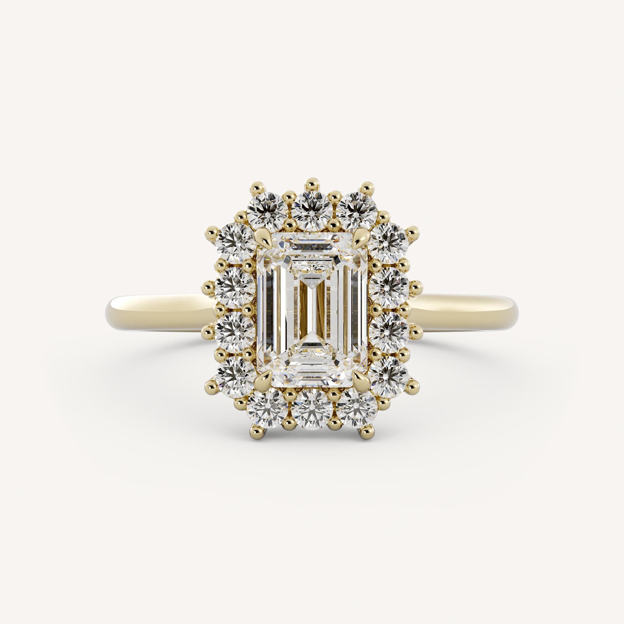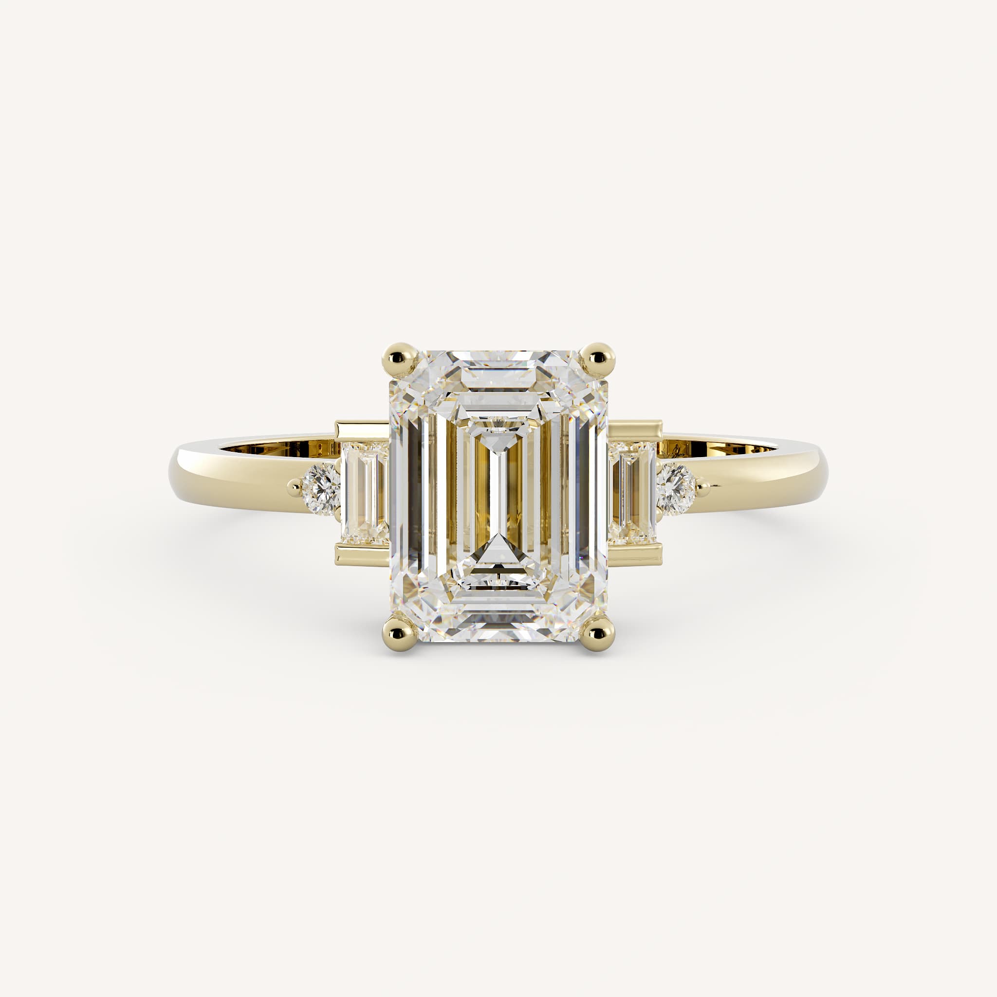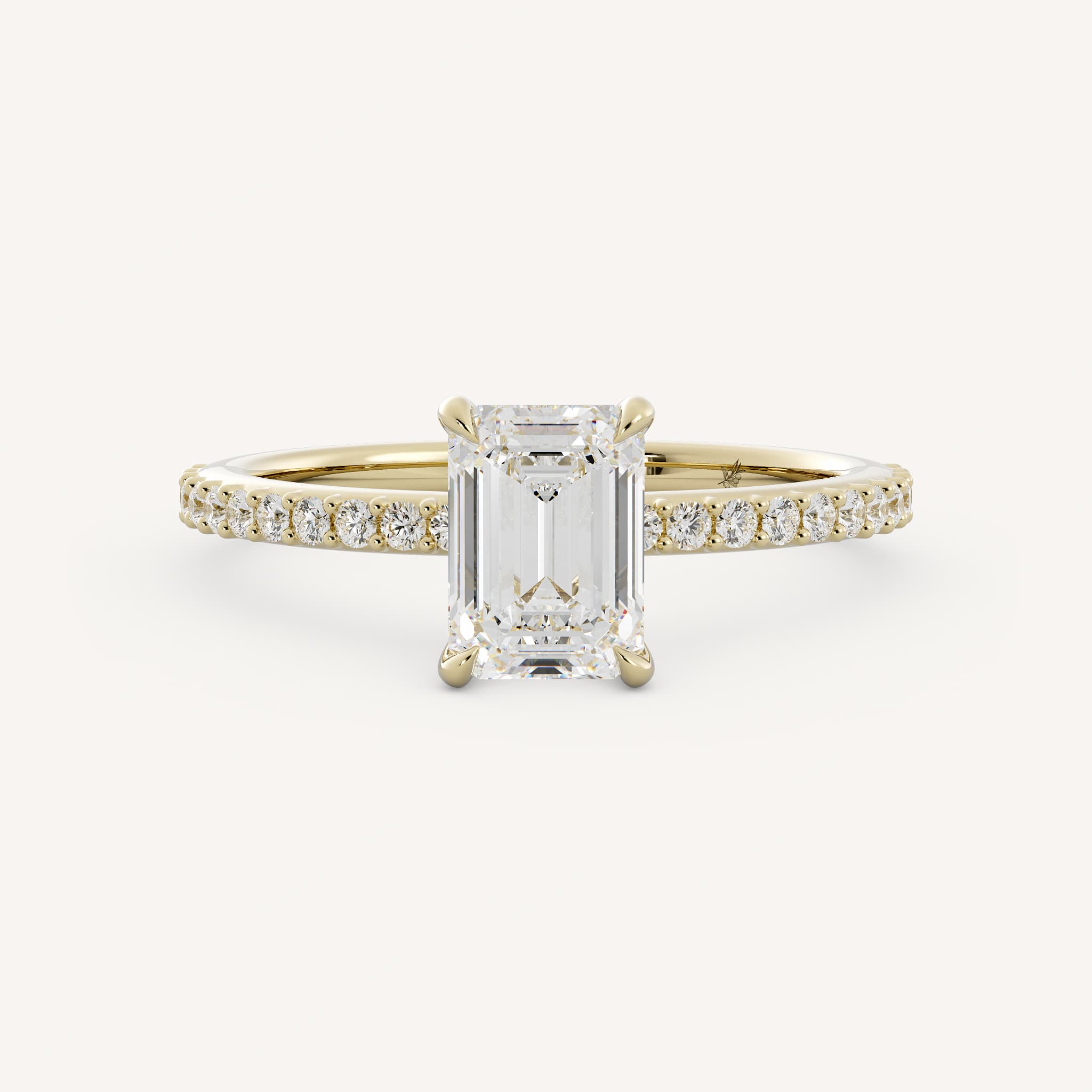 Small diamonds can be used as accents to the radiant or emerald cut center. This showcases the center stone and adds sparkle!