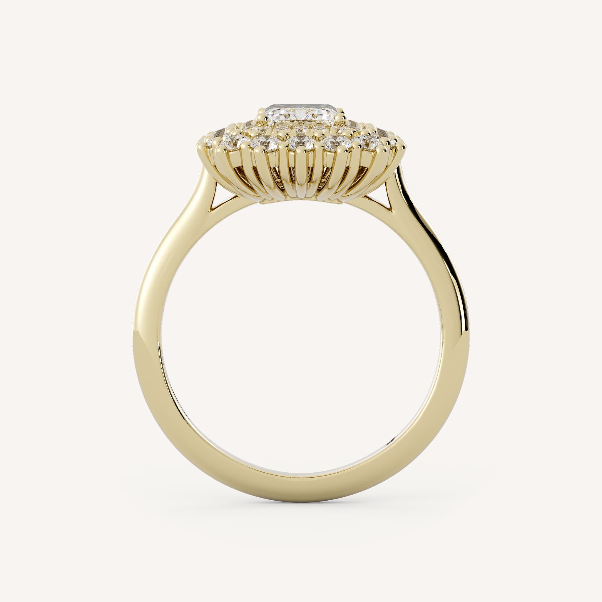 Halo settings make the center diamond appear larger because of the extra sparkle produced by the diamonds surrounding it.