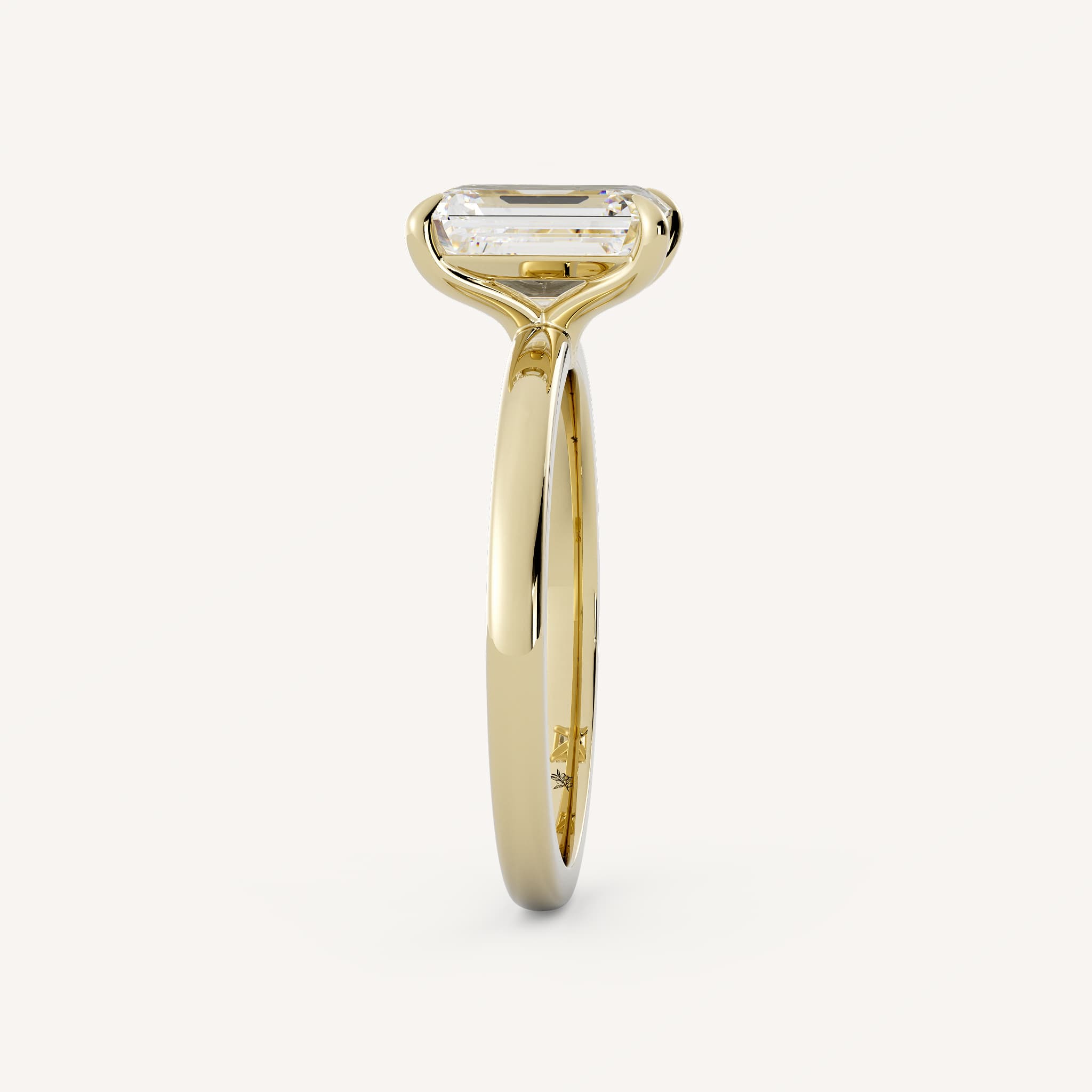 Abigail features a classic emerald shaped center stone set in a traditional solitaire setting on a half round shank.