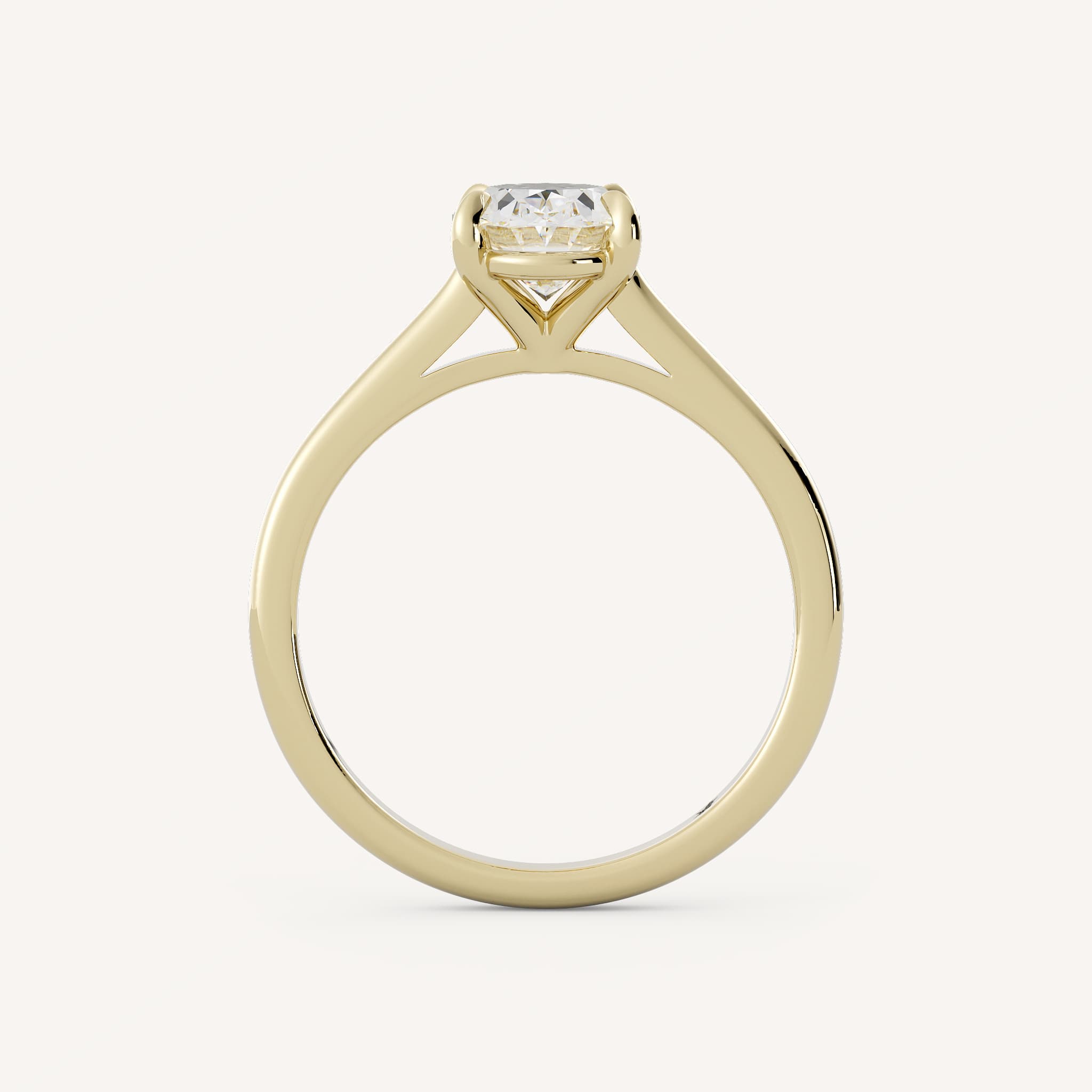 Adaline features a simple oval center stone set in a cathedral solitaire setting on a half round shank.