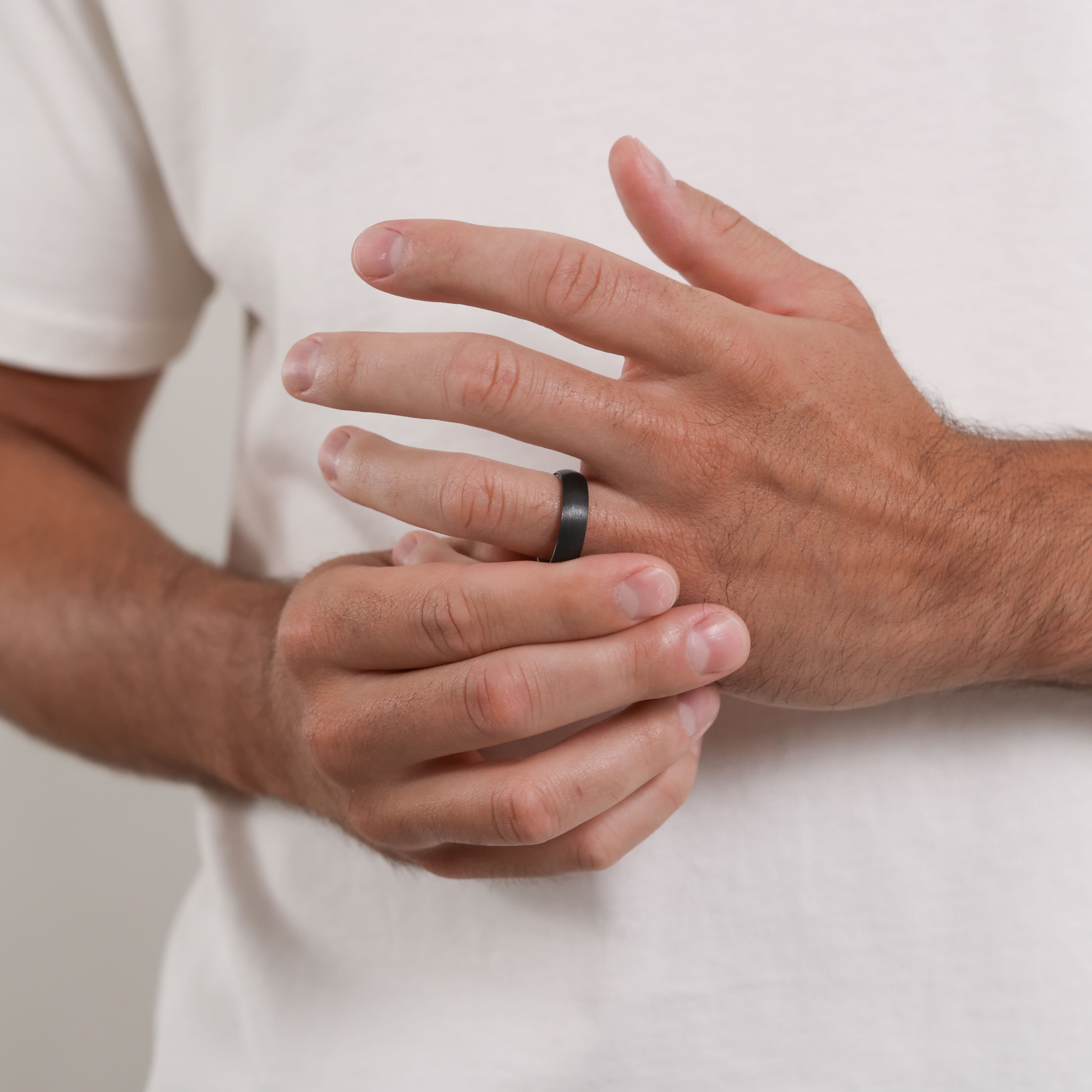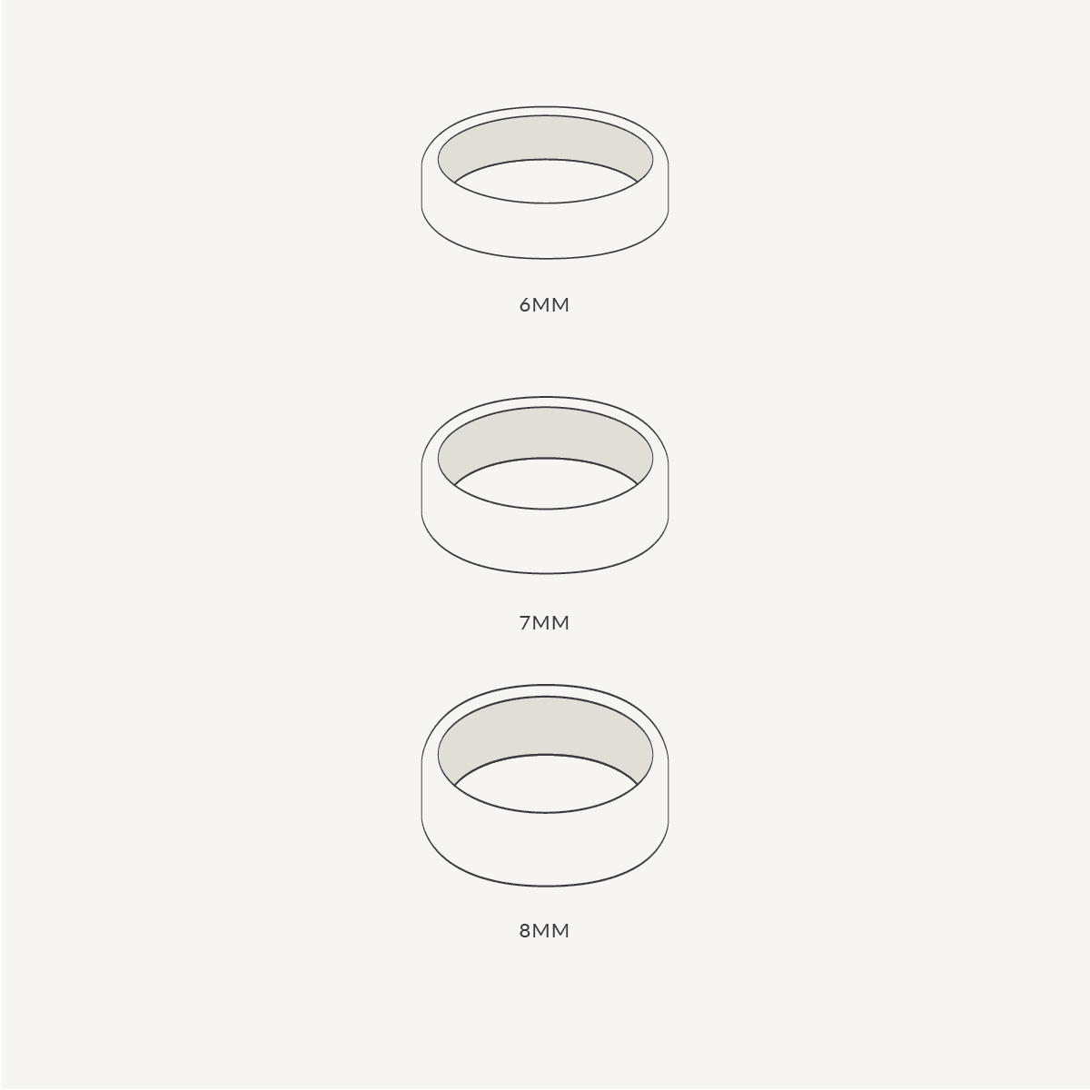 Adam is a 14K gold band with a satin finished zirconium cover. Comes in 6mm, 7mm, 8mm widths.