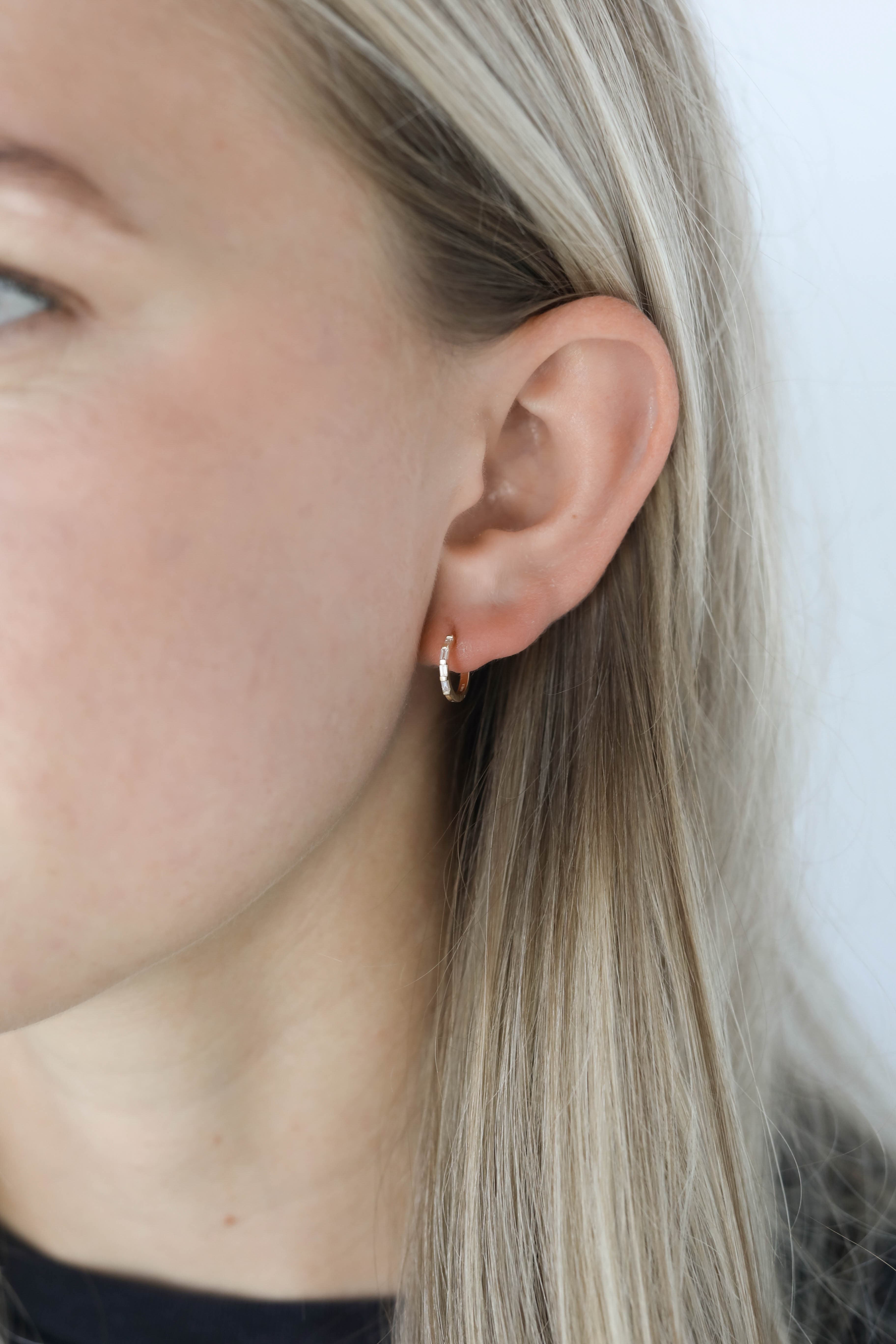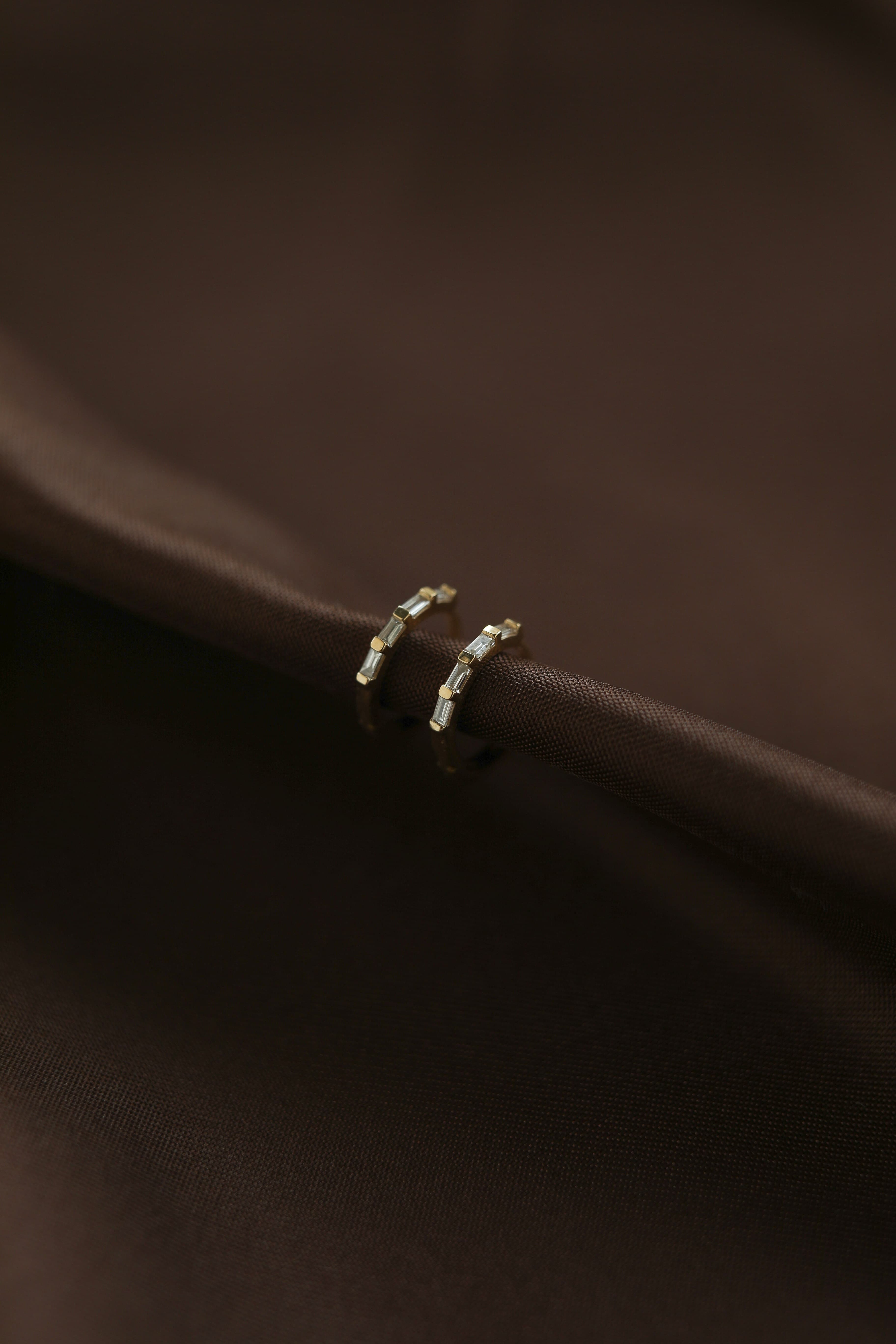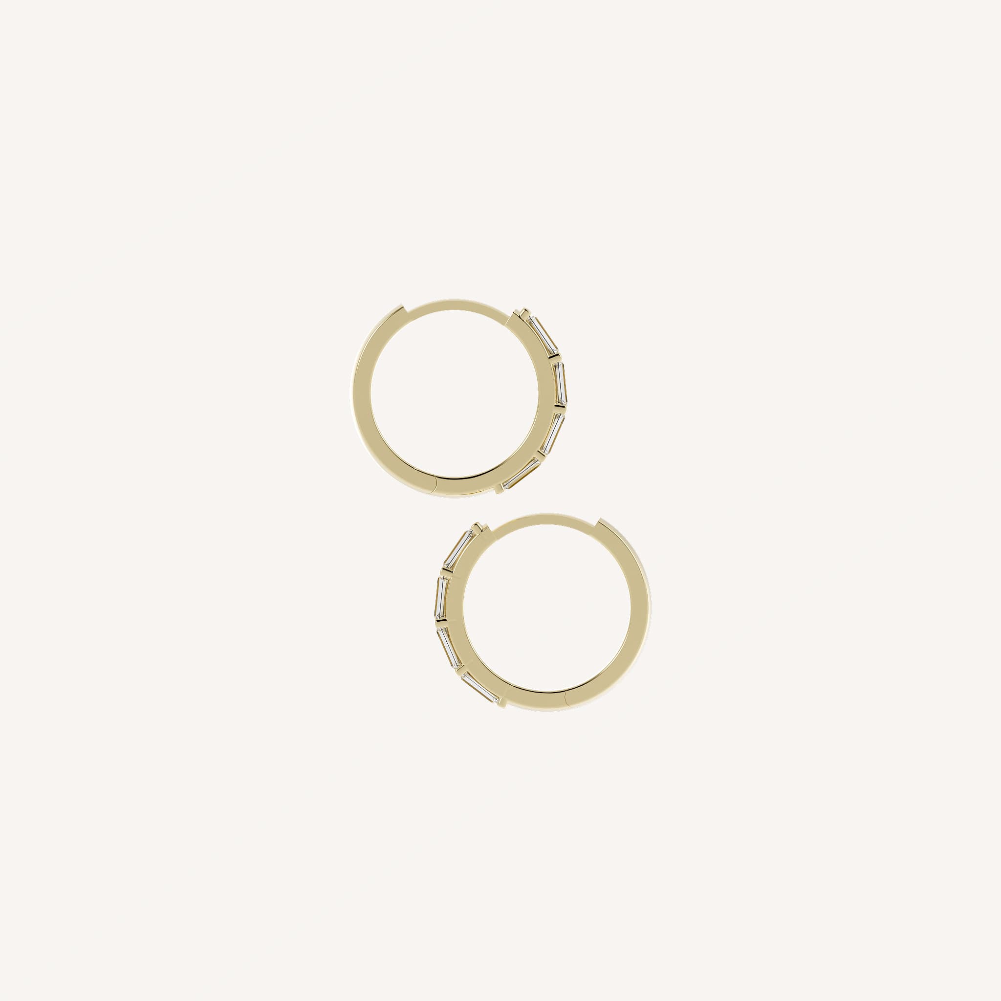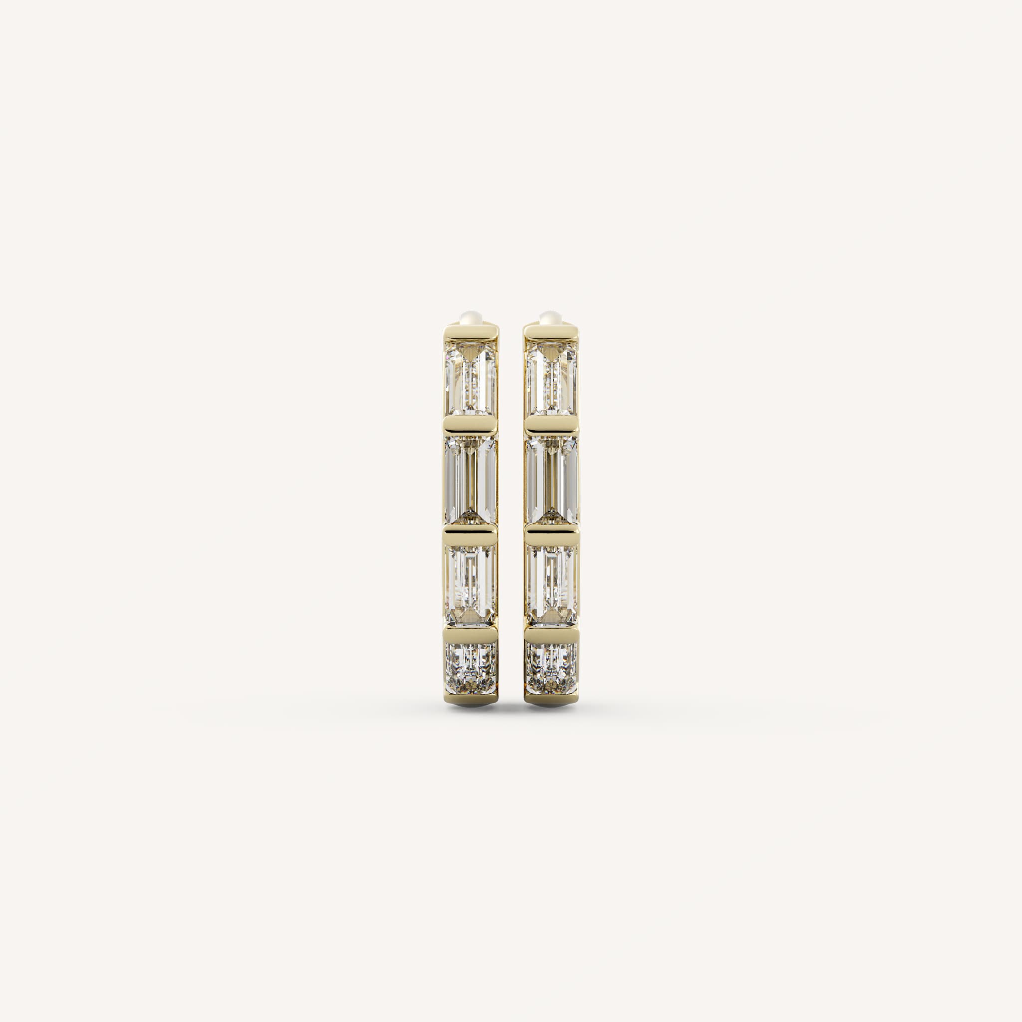 Baguette Hoops are earrings featuring eye-catching natural diamond baguette stones set in 10mm hinged hoops.