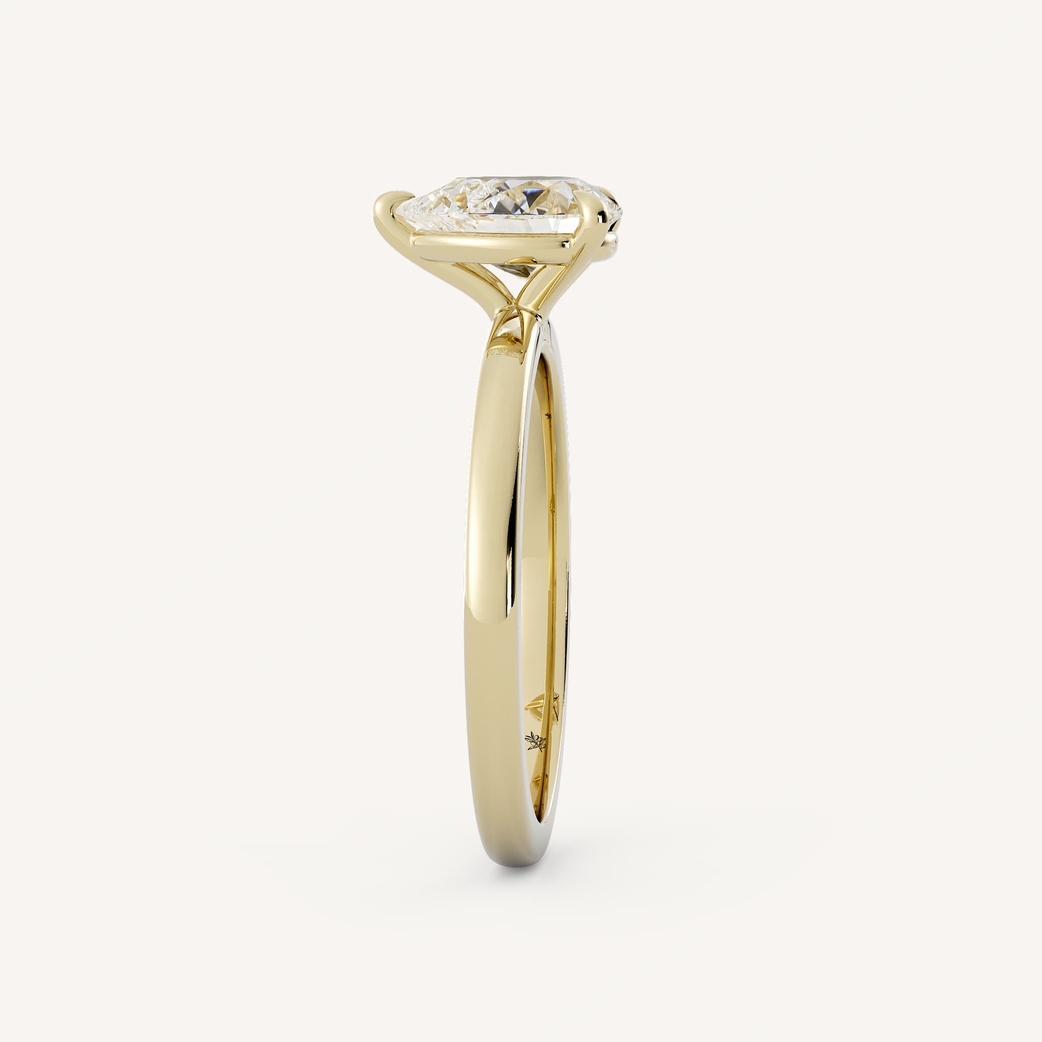Carter features a classic pear center stone set with three claw prongs in a traditional solitaire setting on a half round shank.