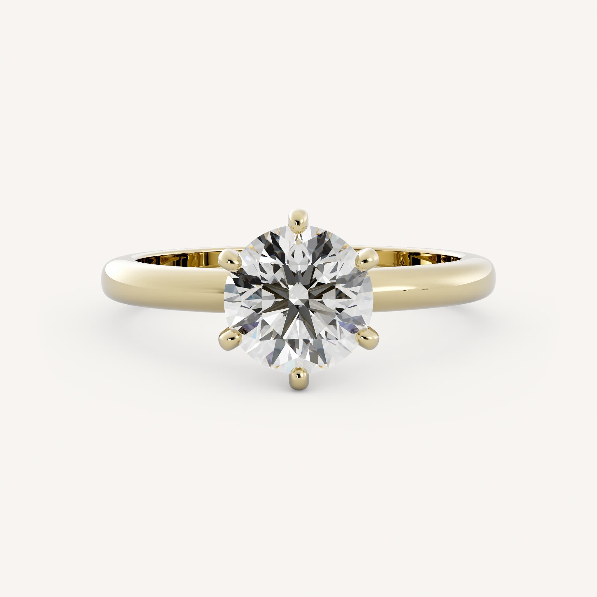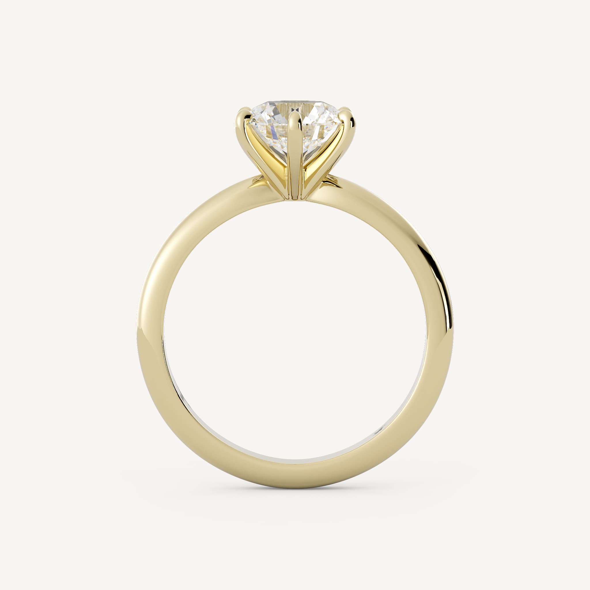Charly features a round center stone set with six bold prongs on a half round shank.