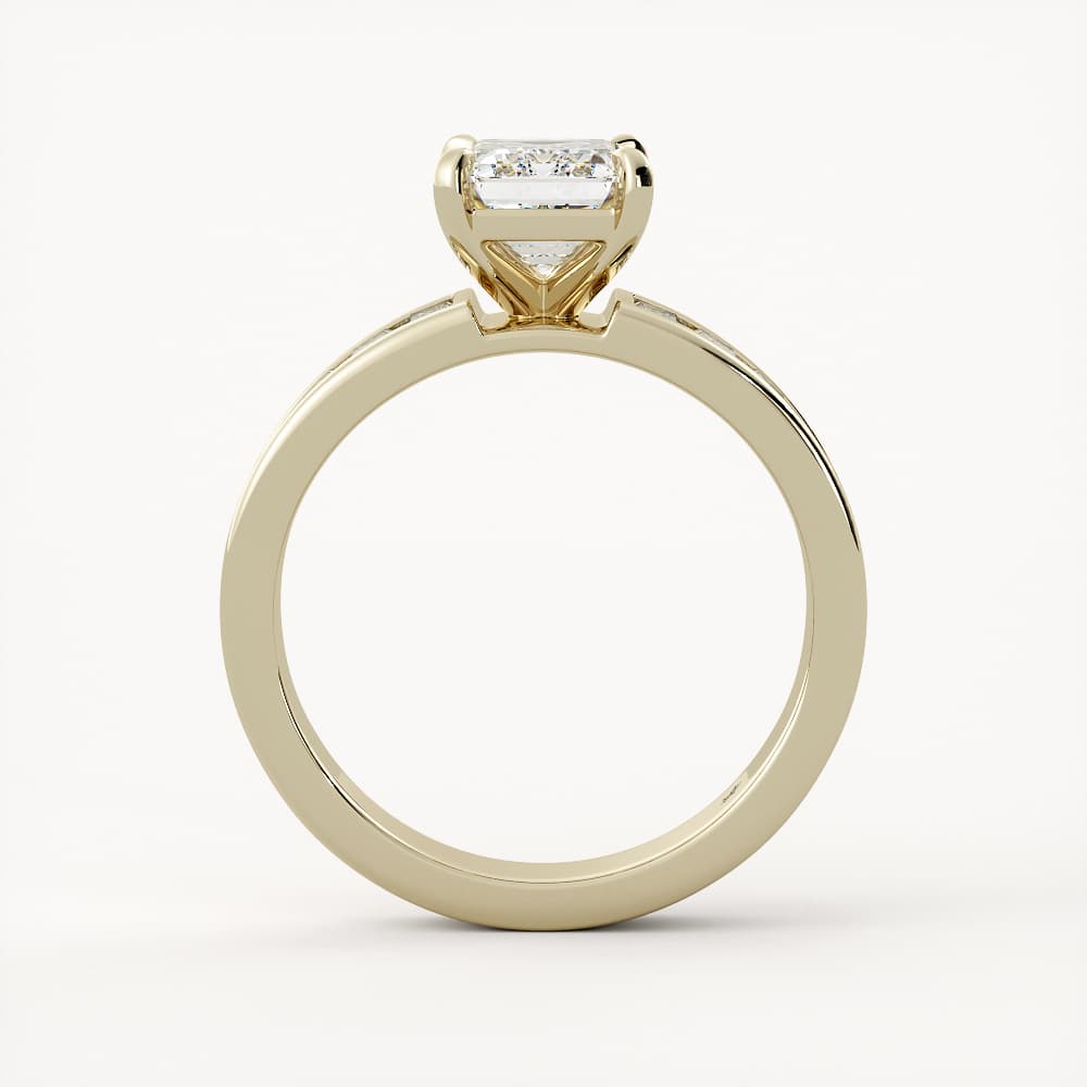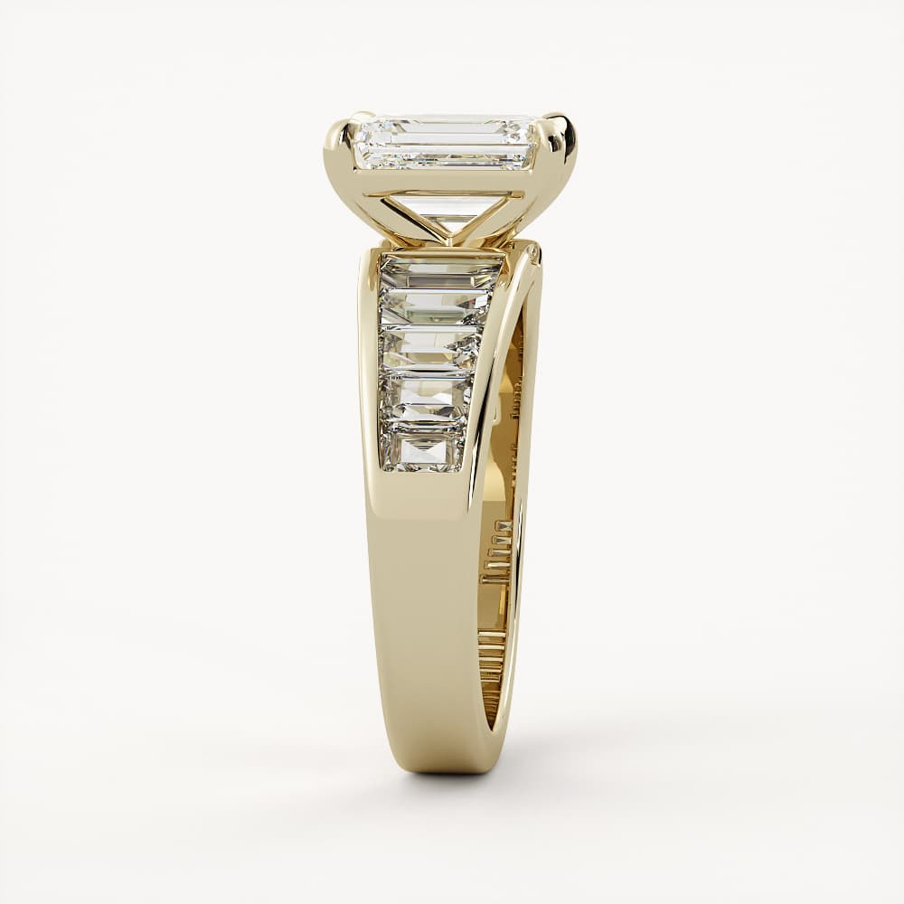 The perfect marriage between vintage and modern, Chelsey features a center stone choice between lozenge and emerald with a graceful tapered shank featuring straight channel set baguettes.