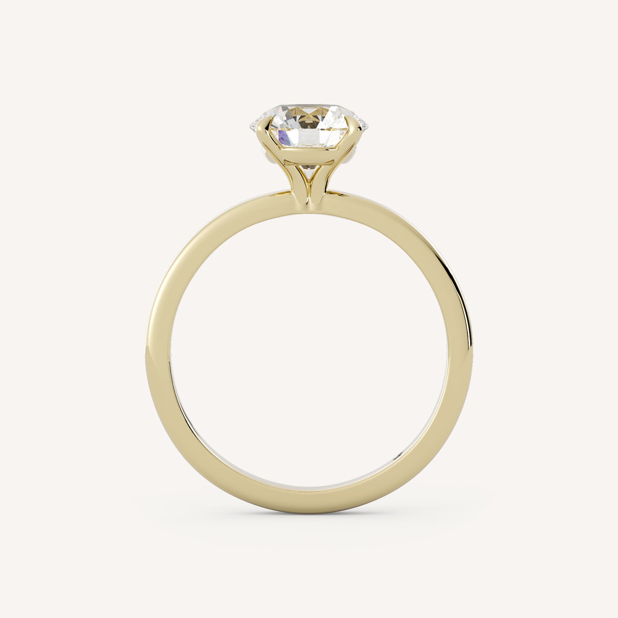 Clementine features a beautiful round center stone set in a traditional solitaire setting on a half round flat edge shank.