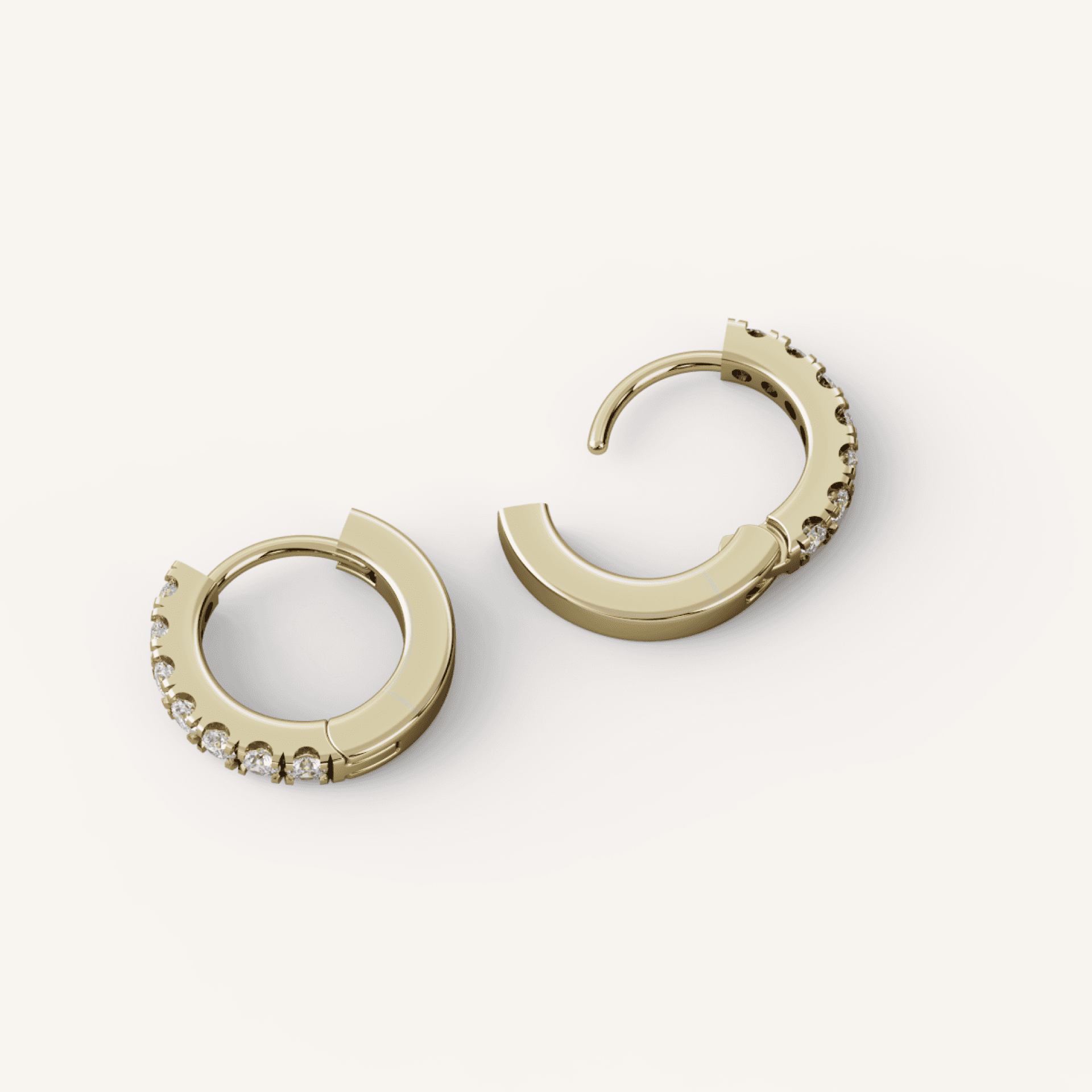 Diamond Hoops are a pair of hinged hoop earrings featuring round lab grown diamonds. Offered in two sizes, 10mm & 12mm.