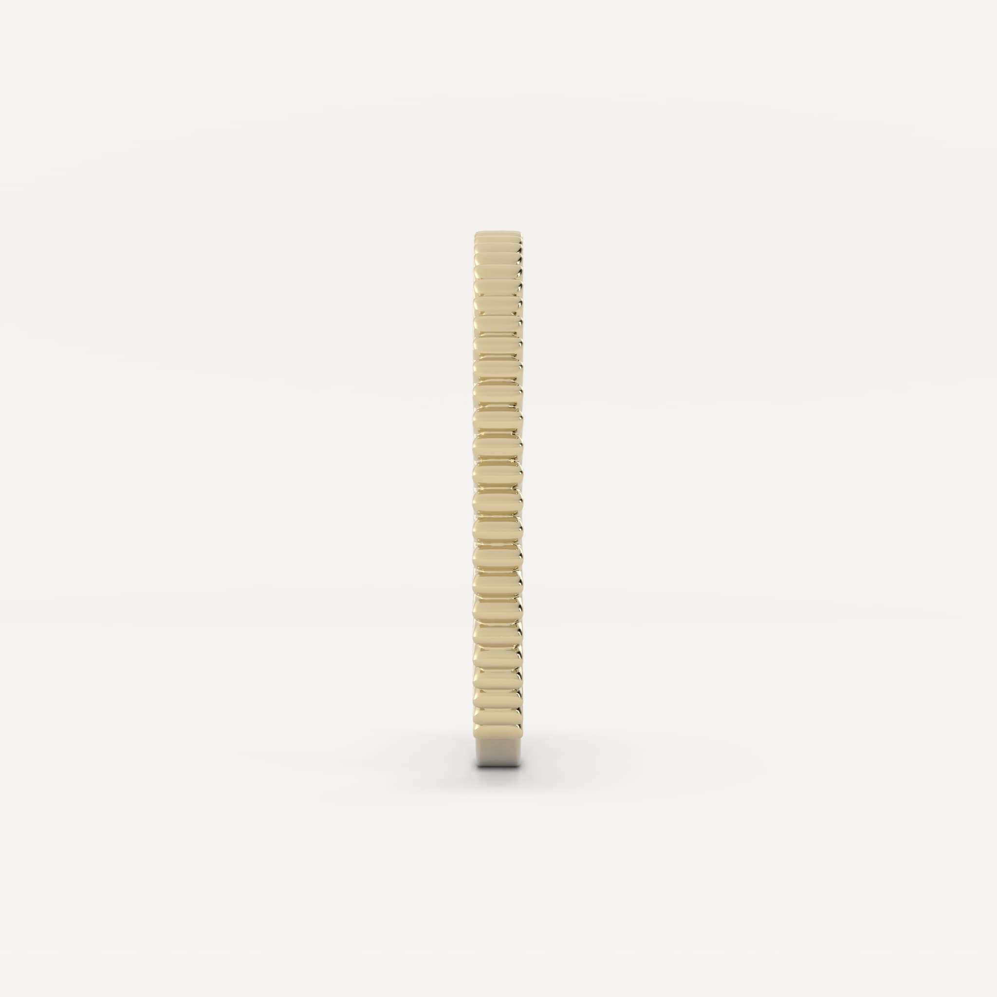 Edison features a uniform vertical groove gold design on 3/4th of the band.