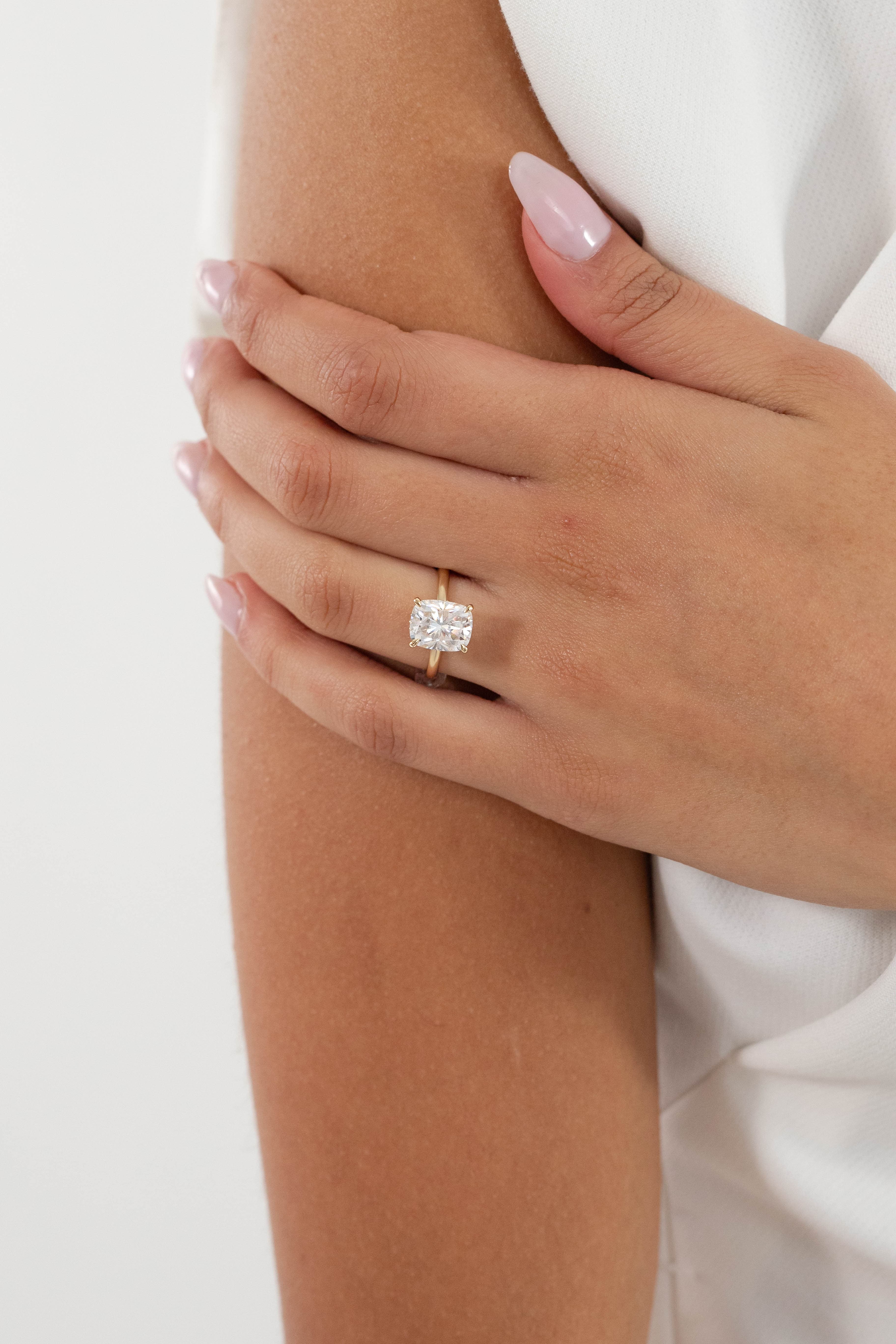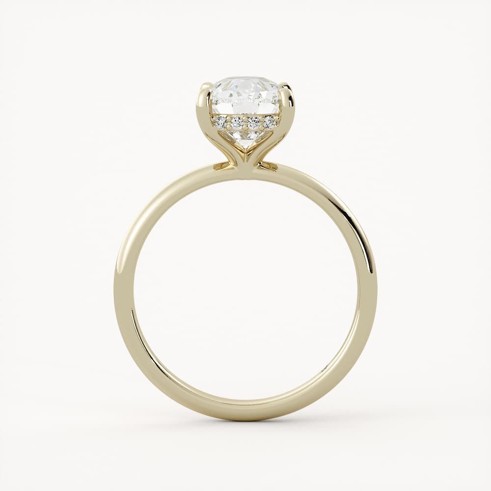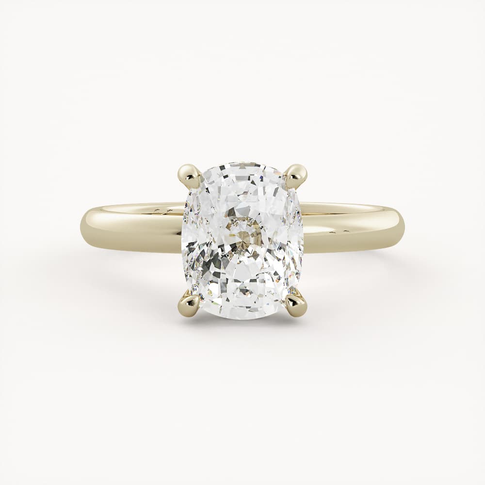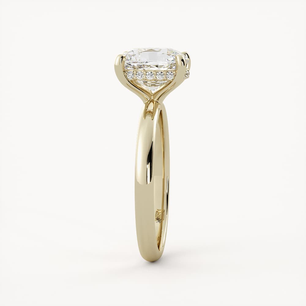 Rooted in tradition, Eliza features a classic elongated cushion solitaire known for its enduring elegance. Set with a traditional setting on a half-rounded 2mm shank, the design preserves its heritage while introducing a hidden halo. This intentional detail offers its light only to those who look closely. Eliza captures the small, fleeting illuminations that shape our days, translating them into a delicate yet constant shimmer, felt more than seen and remembered long after.