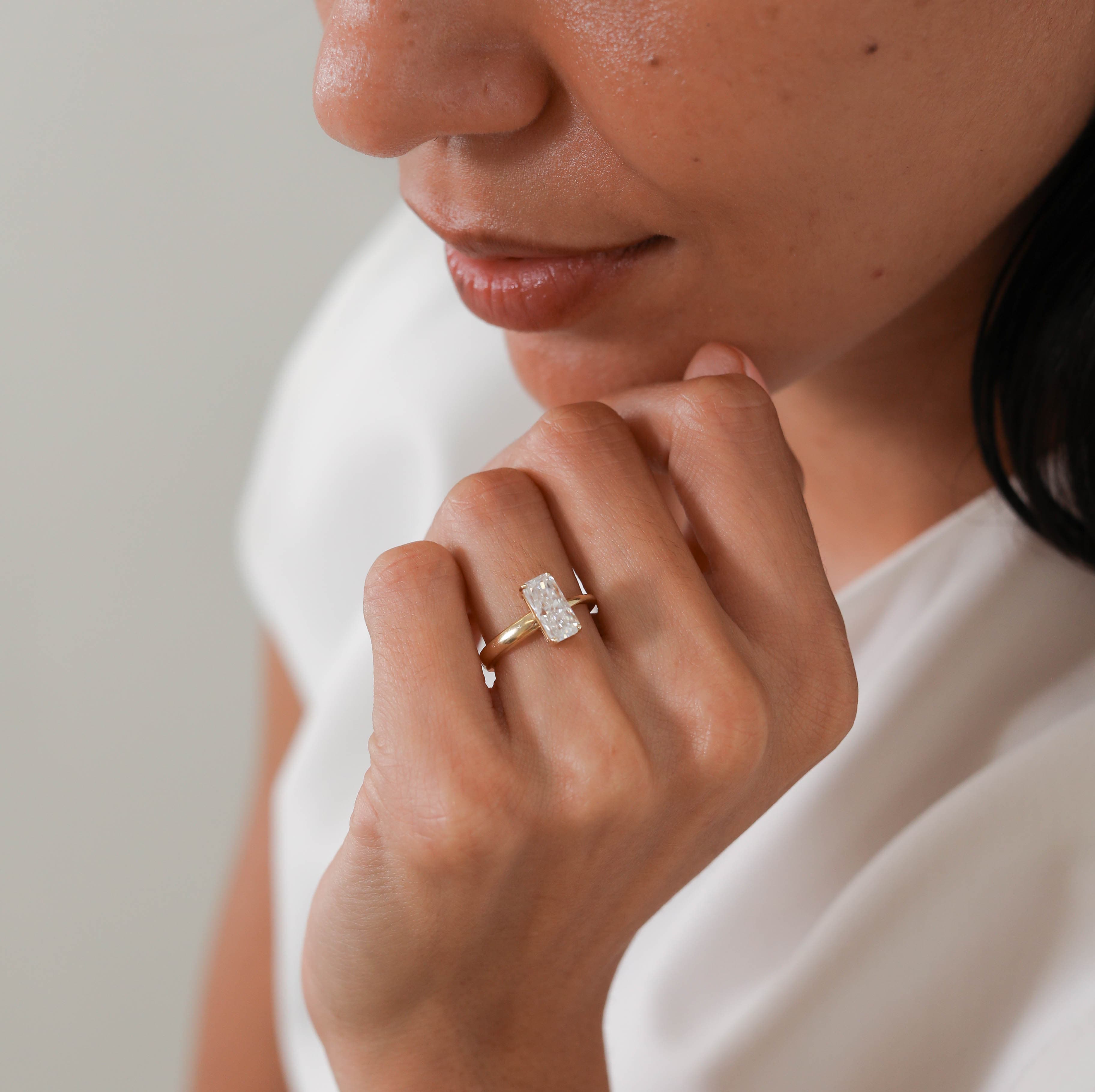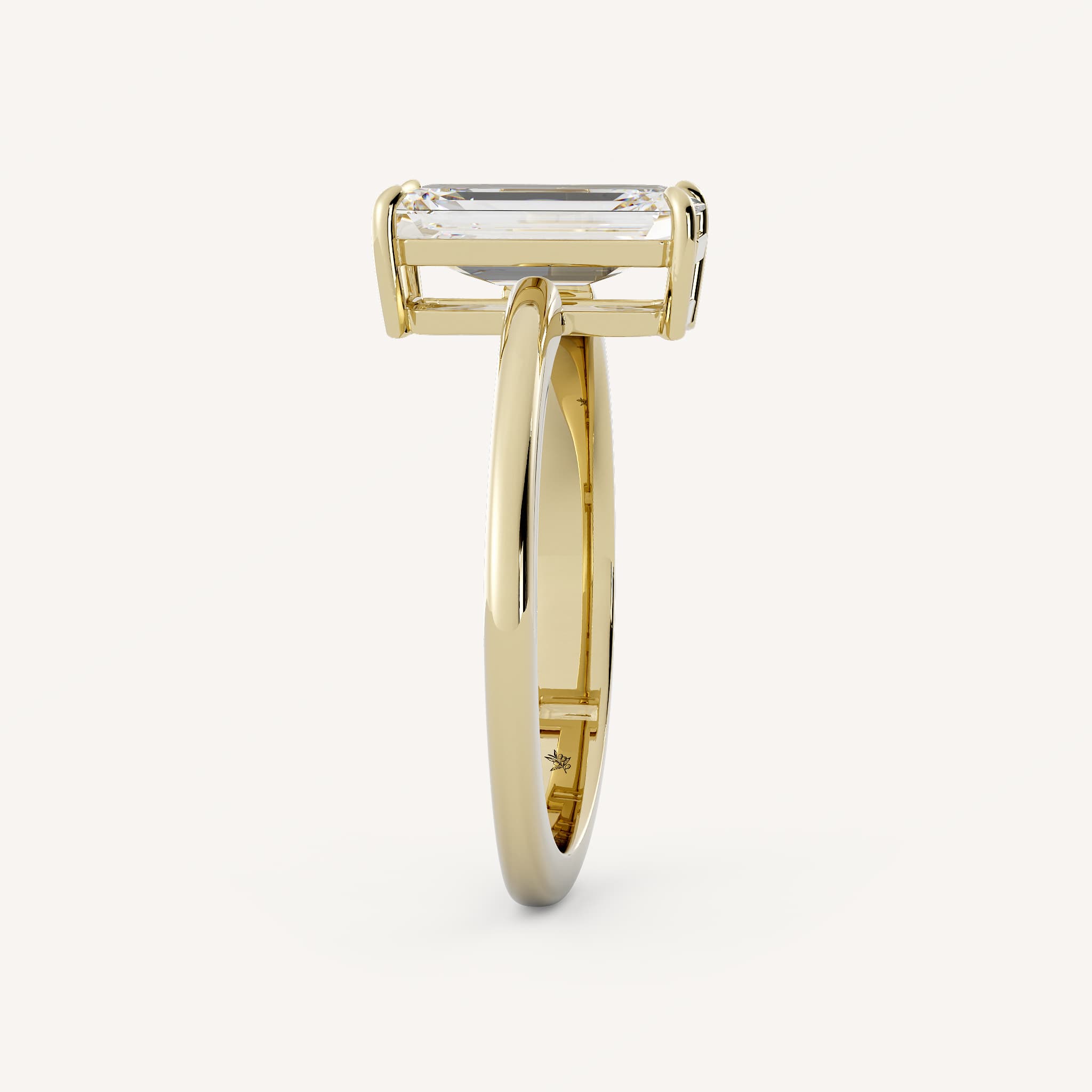 Hendrix features an emerald shaped center stone with a unique tapered half round shank.