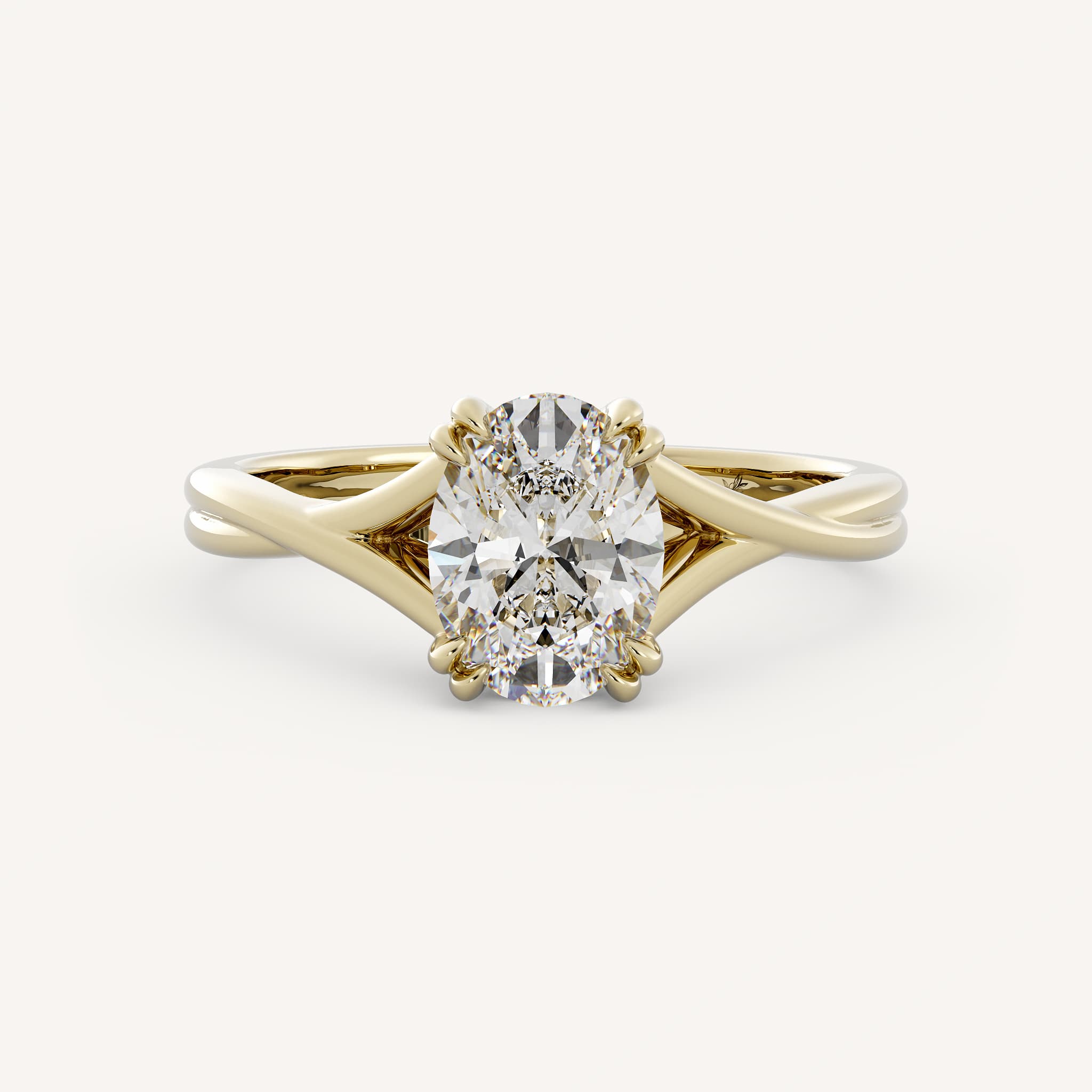 Jensen features a bold oval center stone with double claw prongs set in a basket setting on a twisted shank.