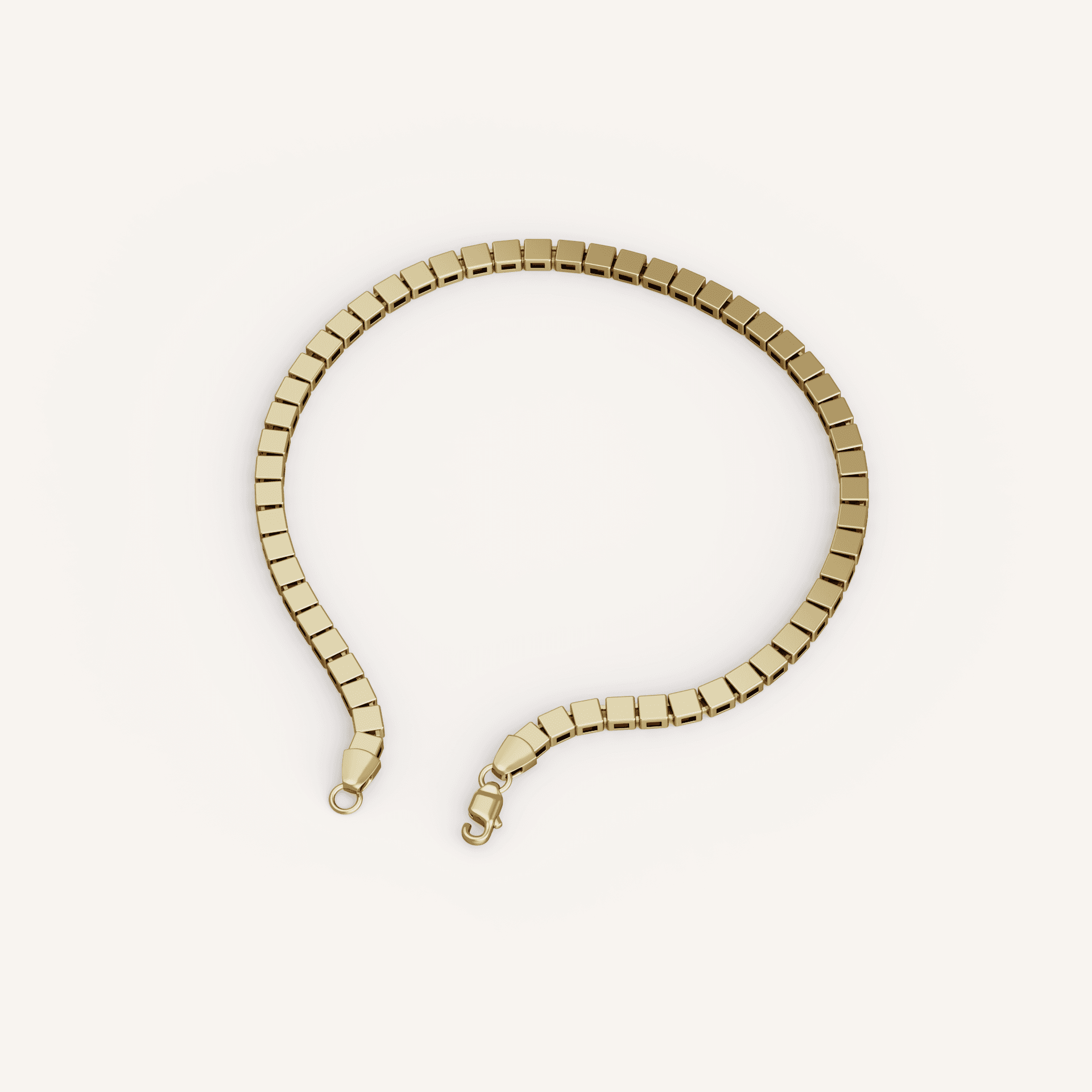 14K Yellow Gold polished square link bracelet with lobster clasp