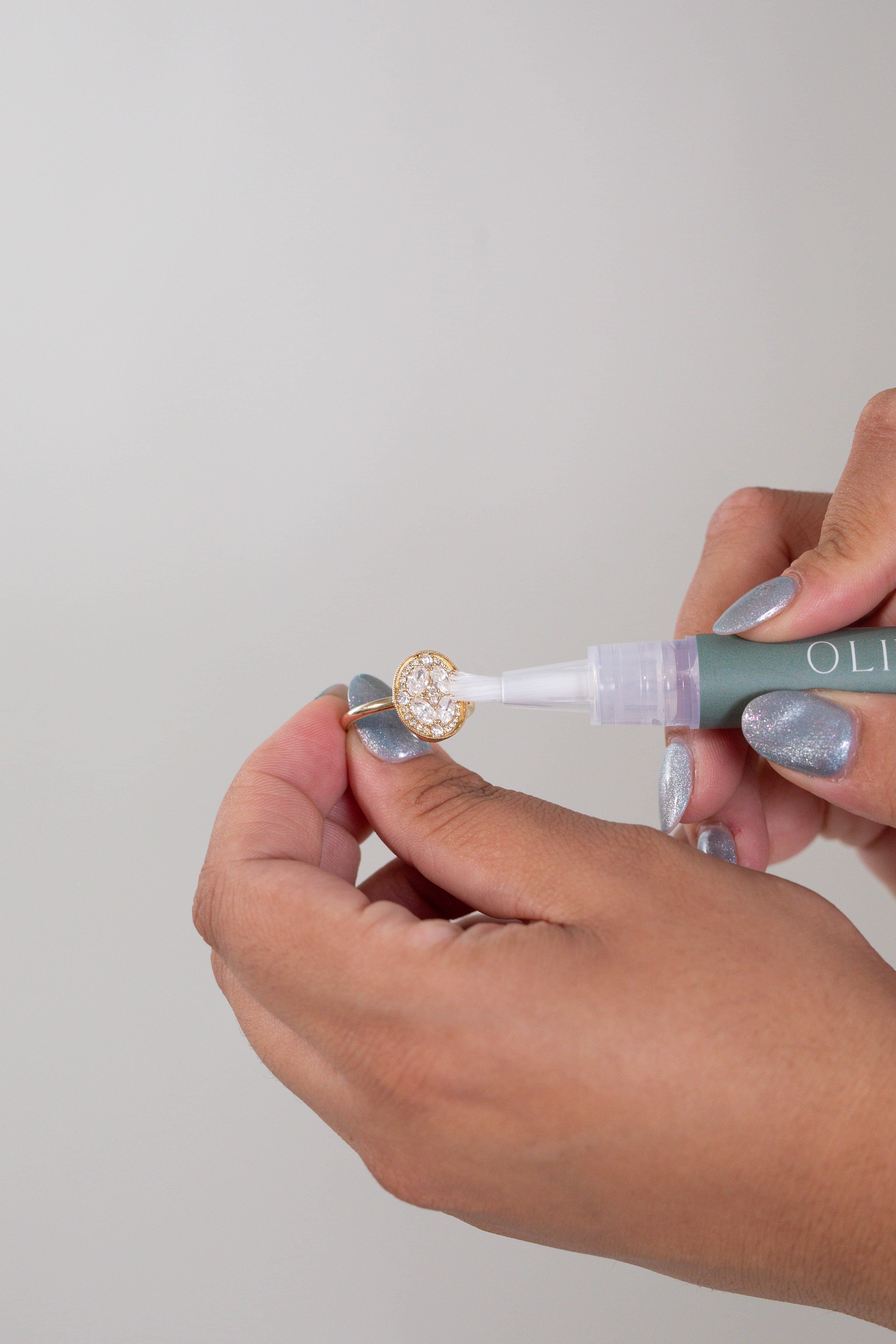 Bring brilliance back to your jewelry with our Mini Spa Box, a complete at home care set designed to gently refresh your favorite pieces. This kit includes a 50ml Foam Cleaner powered by a special blend of bio-based surfactants that transform into a rich foam through a non-aerosol pump, efficiently breaking down daily buildup of lotions, body oils, and grime while remaining safe for diamonds, pearls, most gemstones, and metals. Paired with our non-toxic Cleaning Pen, you will have an easy on-the-go option with a soft brush tip to reach every delicate detail and one-handed click control to dispense just the right amount of solution. The set is completed with a sueded microfiber diamond cloth for polishing and a precision cleaning brush to reach every angle, ensuring your jewelry stays radiant from all sides.