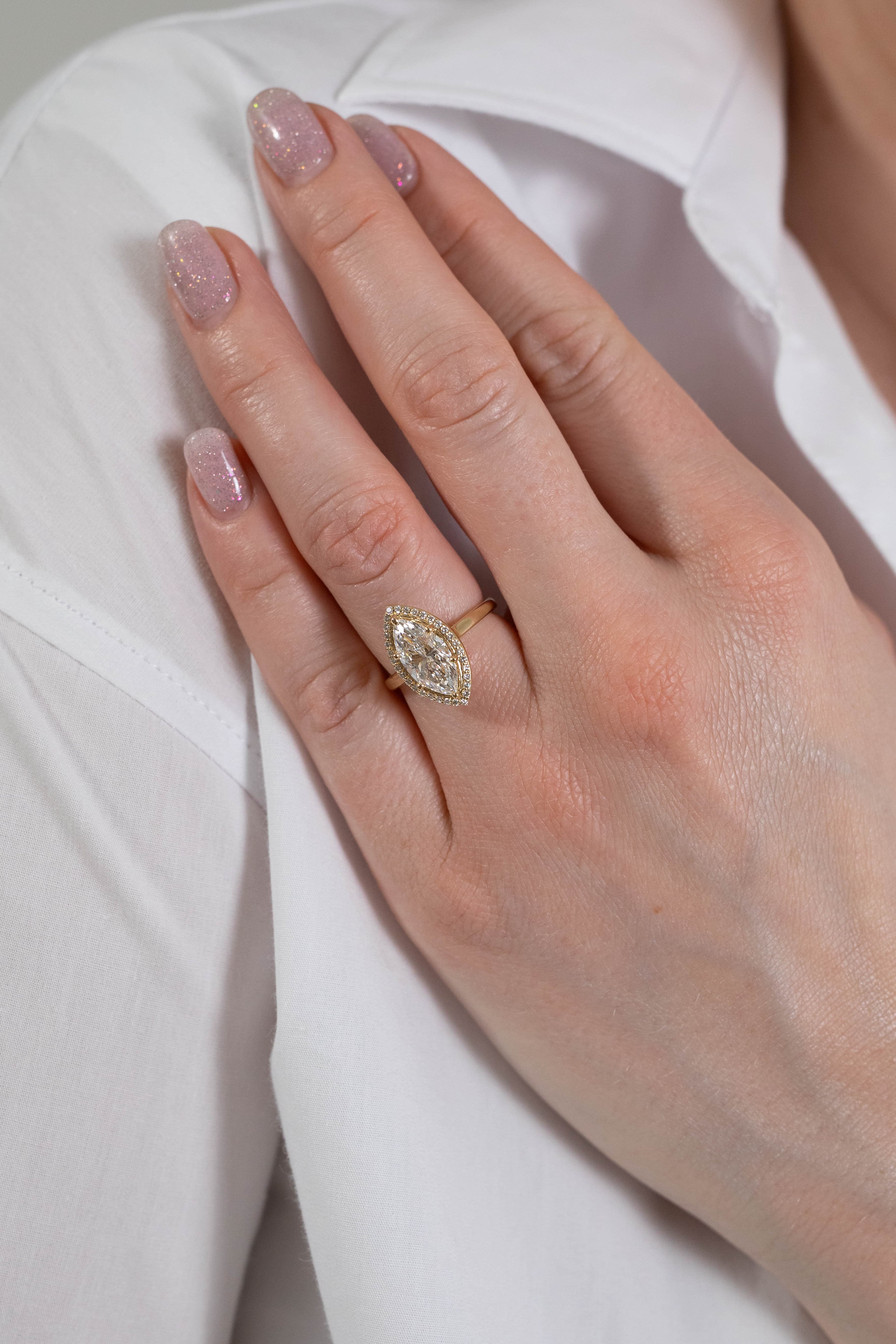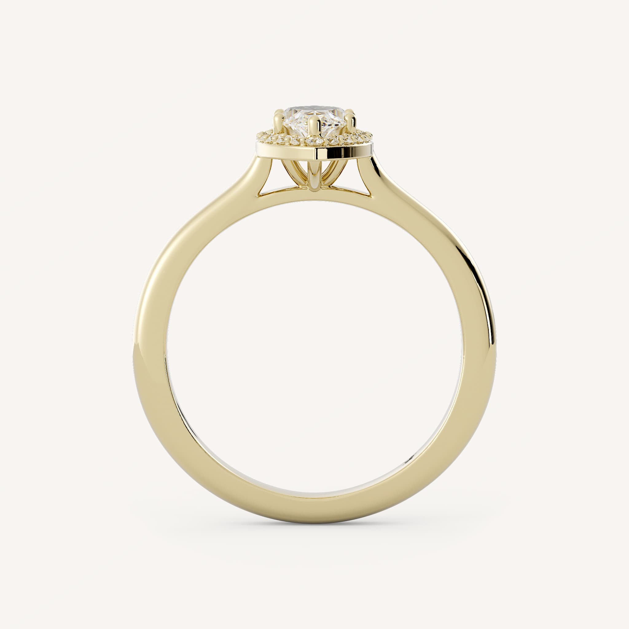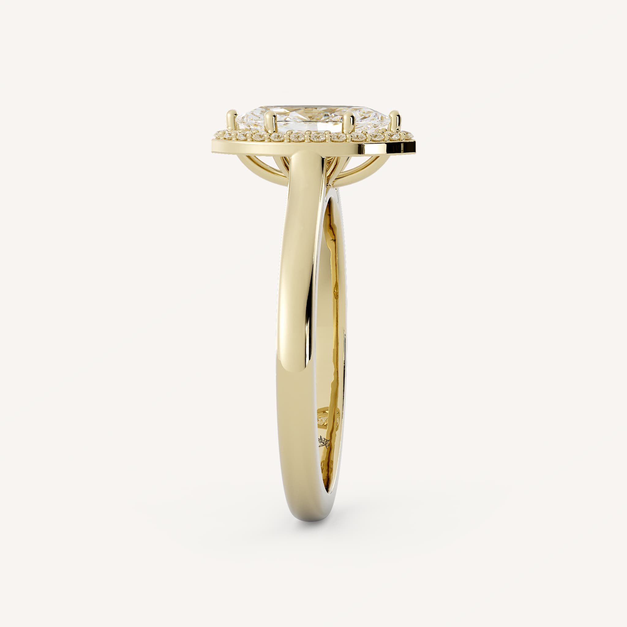Montgomery features a beautiful marquise center stone set in a classic halo with a half round shank.