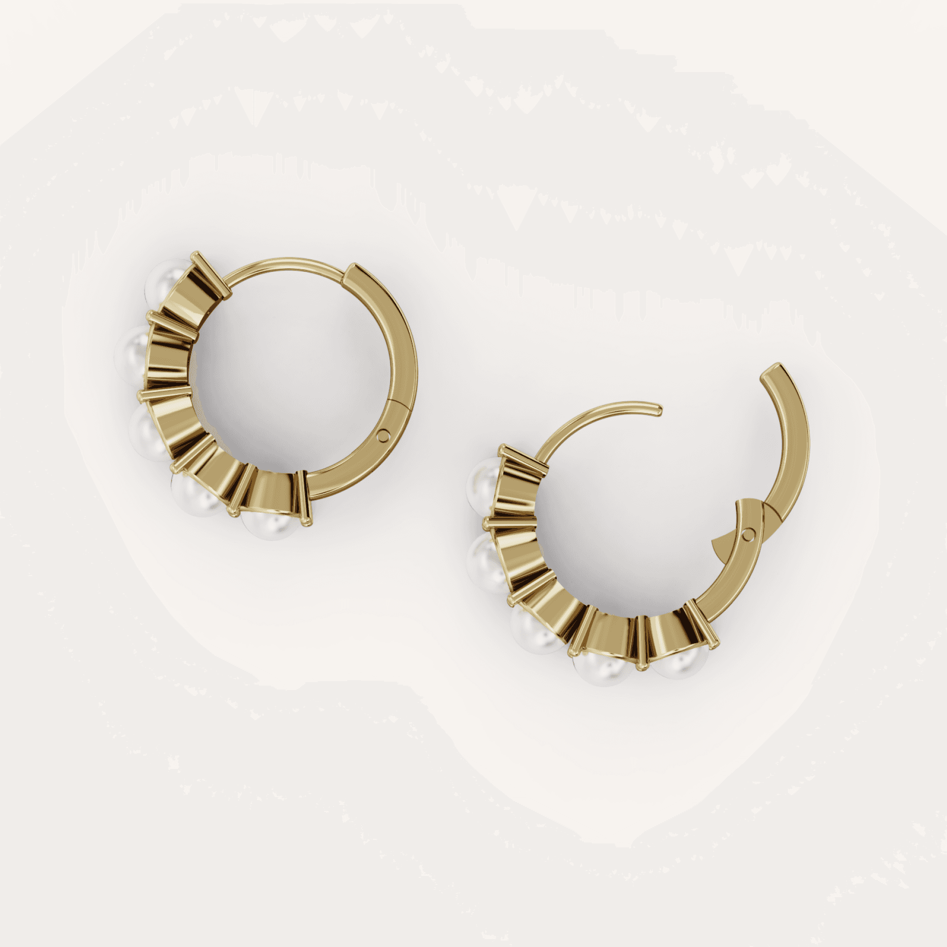 Beautiful huggie hoop earrings set with 3.5mm white freshwater pearls - 14mm size
