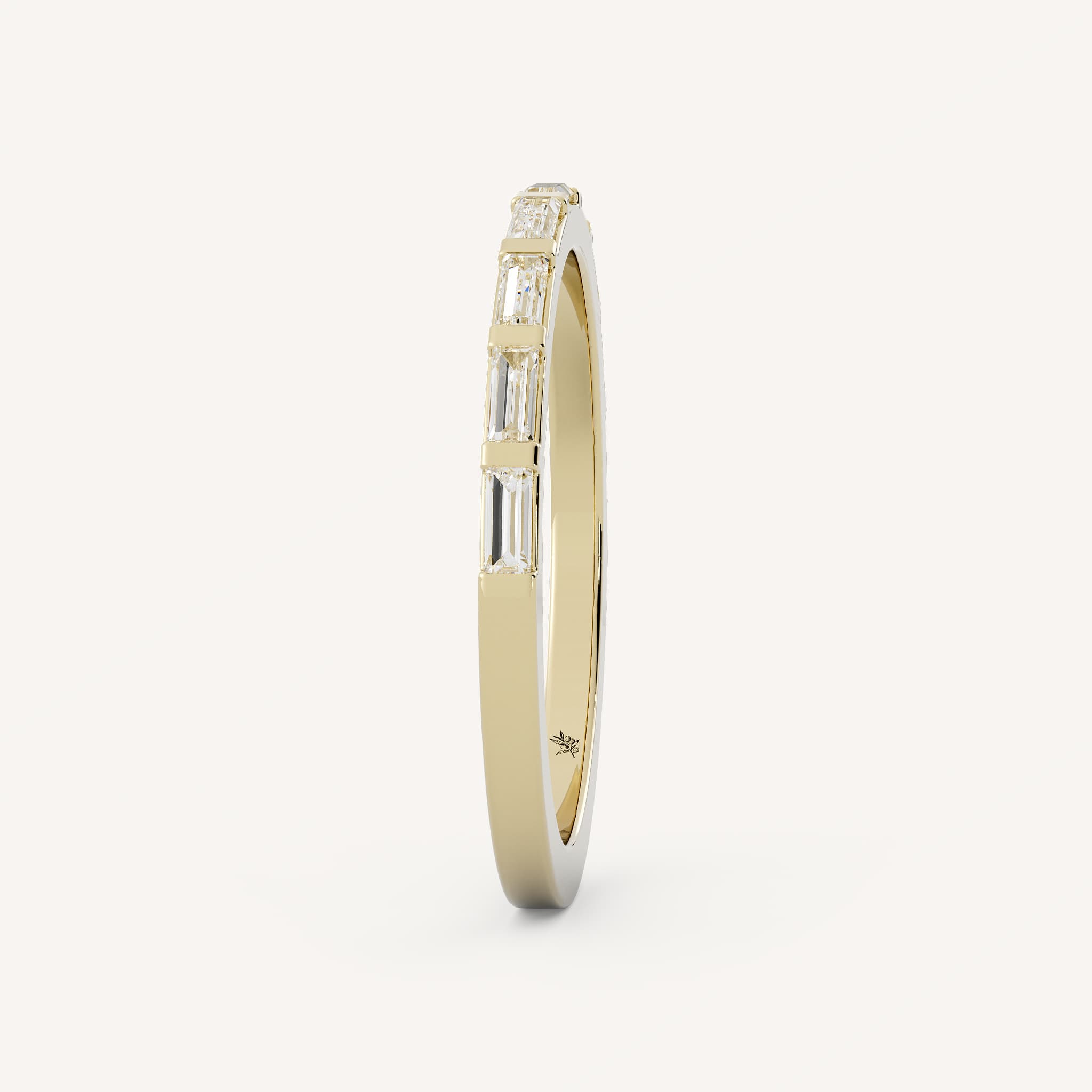 Selene features a set of various sized straight baguettes horizontally set in bar prongs.