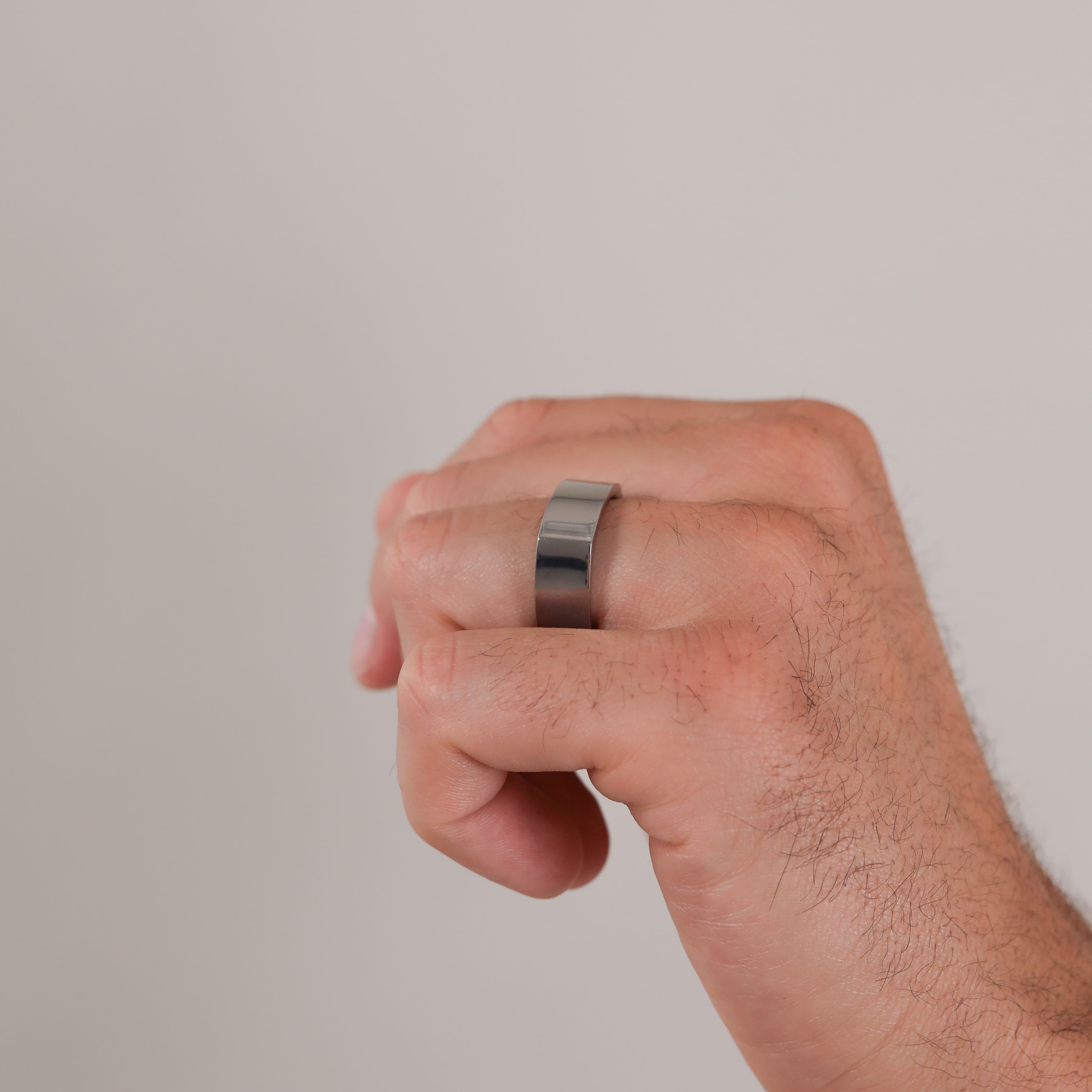 Toby is a flat square profile band with a polished finish. Comes in 6mm, 7mm, and 8mm widths.