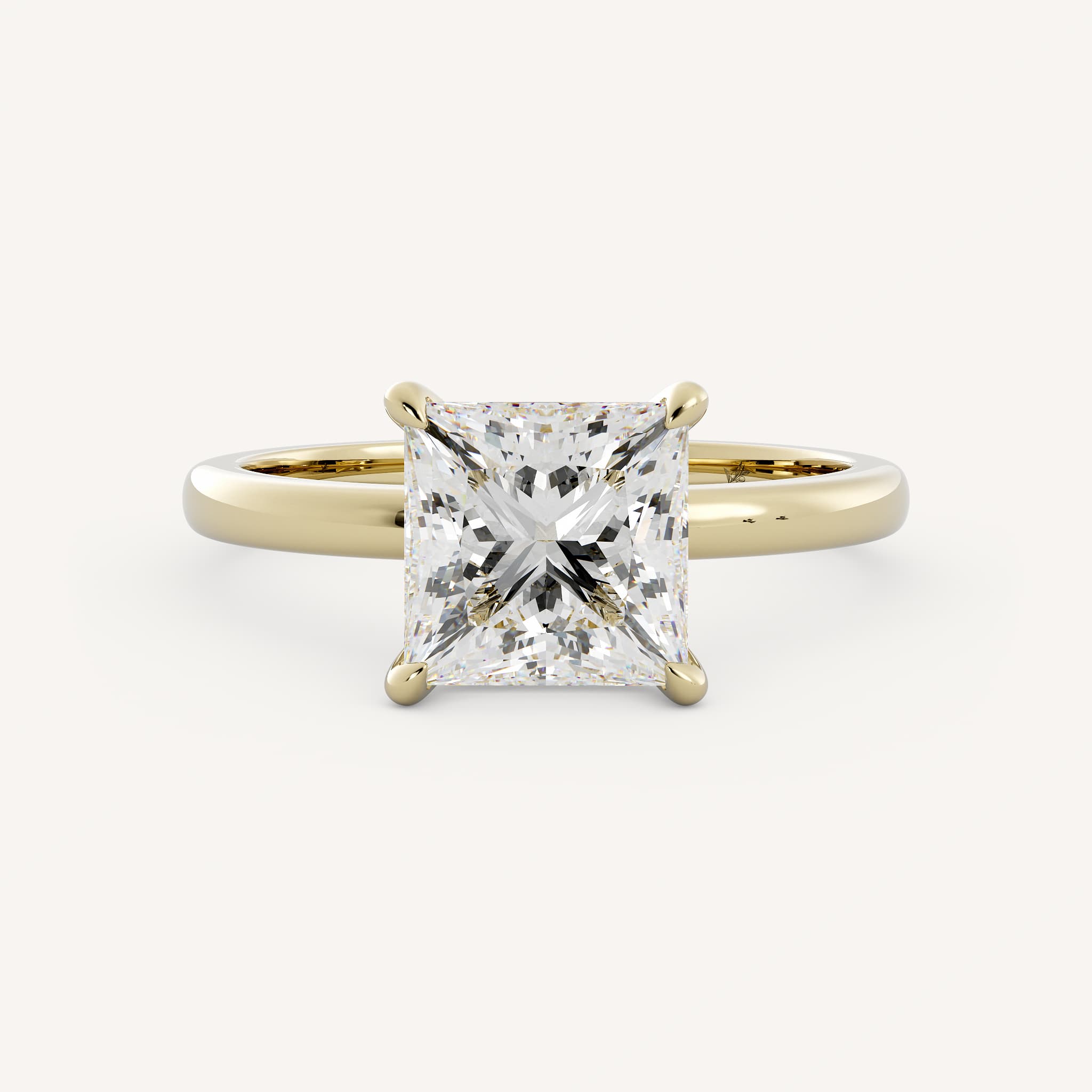 Townes features a charming princess center stone set in a traditional solitaire setting on a half round shank.